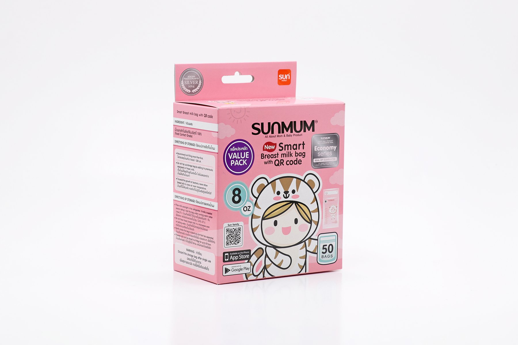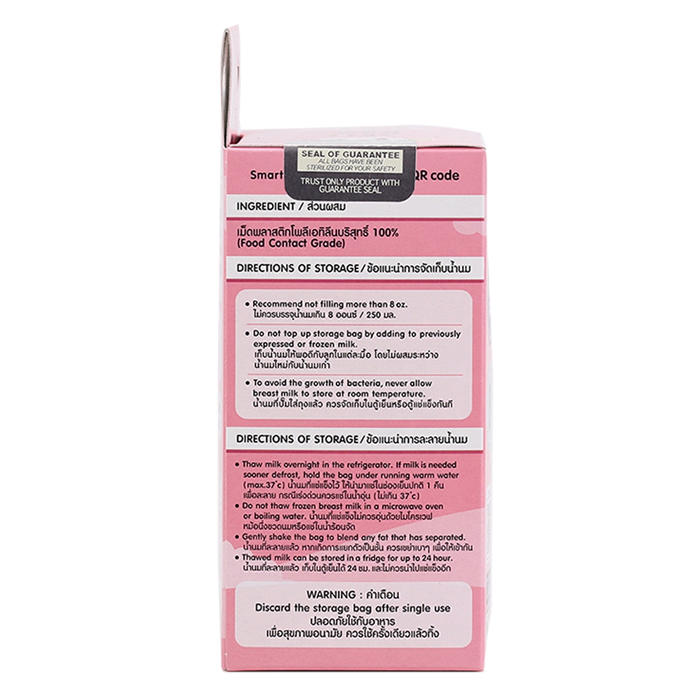 Túi Trữ Sữa SUNMUM BABY 100ml (Hộp 30 pcs) MẪU MỚI - Túi dày dặn hơn mẫu cũ, bề ngang rộng hơn và túi ngắn hơn mẫu cũ, trên túi có in hình mẹ bồng con rất dễ thương, có 3 zip khóa màu trắng, 2 bên viền nẹp sâu hơn chống rò rỉ sữa. - ƯU ĐIỂM : Có 3 lần khóa Zipper - Đối với các Mẹ nhiều sữa hoặc phải thường xuyên làm việc bên ngoài , tích trữ sữa giúp Mẹ đảm bảo lượng sữa Mẹ cho bé uống mỗi ngày. chiếc túi trữ sữa sẽ giúp Mẹ trữ sữa an toàn và hữu hiệu nhất. - Túi trữ sữa SUNMUM được sản xuất bởi Công Ty Thanatawan - tại Thái Lan . Công Ty số 1 về sản phẩm túi trữ sữa tại ĐÔNG NAM Á, và chuyên sản xuất , xuất khẩu sang các thị trường khó tính như Mỹ, EU, Singapore.... - Túi trữ sữa SUNMUM được làm bằng chất liệu LLDPE/LDPE (polyethylene mật độ thấp, chuyên dùng để bảo quản thực phẩm an toàn) cao cấp , không có BPA , đã được qua kiểm định chất lượng nghiêm ngặt nên rất an toàn cho bé. - Túi trữ sữa mẹ SUNMUM đã được tiệt trùng sẵn, đảm bảo sữa mẹ luôn sạch và an toàn cho hệ tiêu hóa non nớt của bé. - Túi trữ sữa SUNMUM có hai lớp rất chắc chắn, an toàn - Dễ khóa với 3 lần khóa Zipper ở miệng túi đảm bảo chống tràn, chống rò rỉ, giúp bảo quản sữa trong điều kiện tốt nhất. - Có lớp mép túi bảo vệ sản phẩm ( trước khi sử dụng khách hàng mới xé lớp mép bảo vệ để đảm bảo vệ sinh tuyệt đối 100%) - Chữ in giữa lớp túi trong và lớp túi ngoài nên rất an toàn cho bé, không thể bị xóa nhờ đó mẹ có thể kiểm soát được lượng sữa uống của bé mỗi ngày. - Có thể hút sữa trực tiếp vào túi mà không cần bình. - Túi thiết kế đáy túi hình ovan nên hoàn toàn tự đứng thẳng, tiết kiệm diện tích khi bảo quản trong tủ lạnh. - An toàn với tủ lạnh, tủ đông. - Túi đựng sữa mẹ (trữ sữa mẹ) gọn gàng, xếp đứng trong tủ lạnh, tủ đông dễ dàng. Sản phẩm có hạn sử dụng (HSD) là 3 năm tính từ ngày sản xuất (được in trên bao bì).