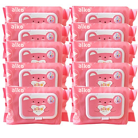✨Combo 10 gói Khăn Giấy Ướt Aiko 100 tờ/gói không hương màu Hồng