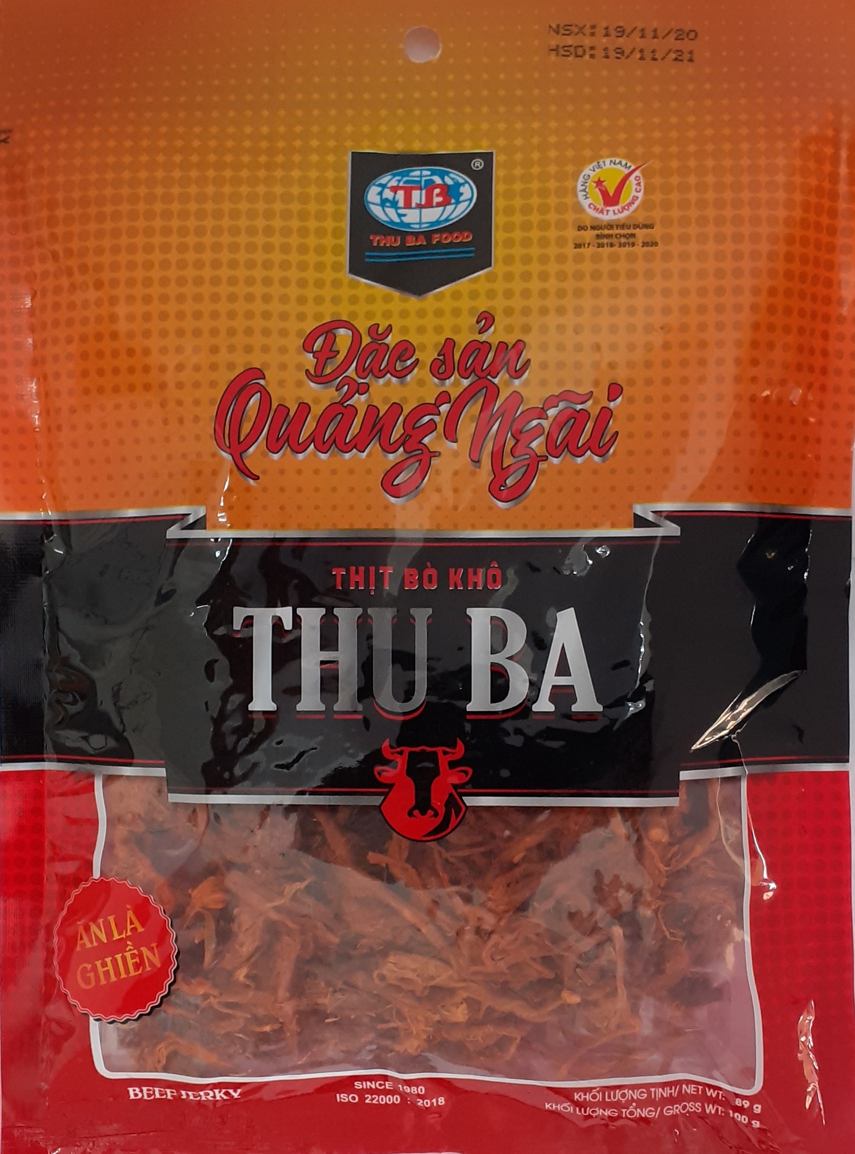 - Bò Khô Thu Ba là món ăn đặc sản vùng quê Quảng Ngãi được sản xuất theo công thức truyền thống kết hợp với công nghệ hiện đại, bảo đảm chất lượng tốt nhất cho sản phẩm.