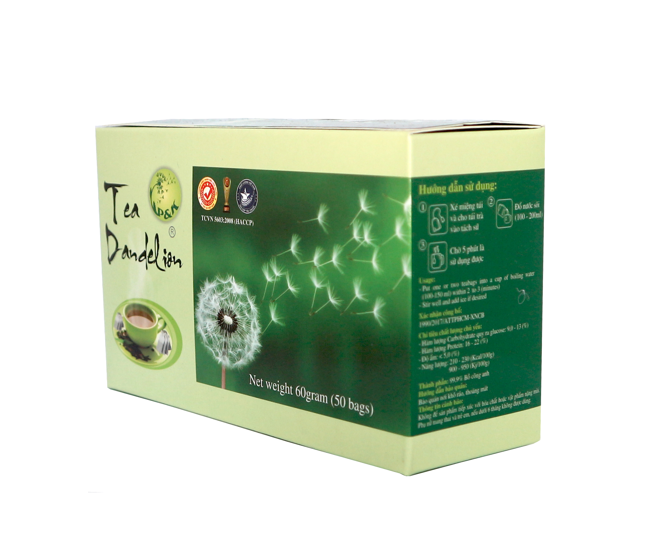 100% Bồ Công Anh, Bồ Công Anh được chọn là giống Bồ Công Anh ngoại nhập, được công ty P&K trồng theo quy trình kiểm nghiệm của Viện nghiên cứu phát triển cây trồng tỉnh Đồng Tháp, sản xuất theo quy trình khép kín, đảm bảo vệ sinh an toàn thực phẩm.