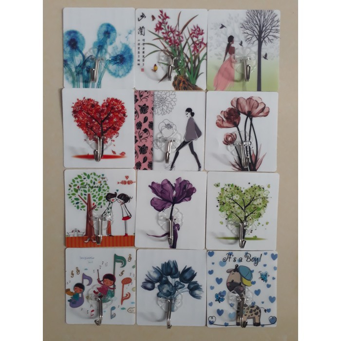 PVN2389 combo 10 Móc dán tường siêu dính in hình 3D Độc Đáo T2