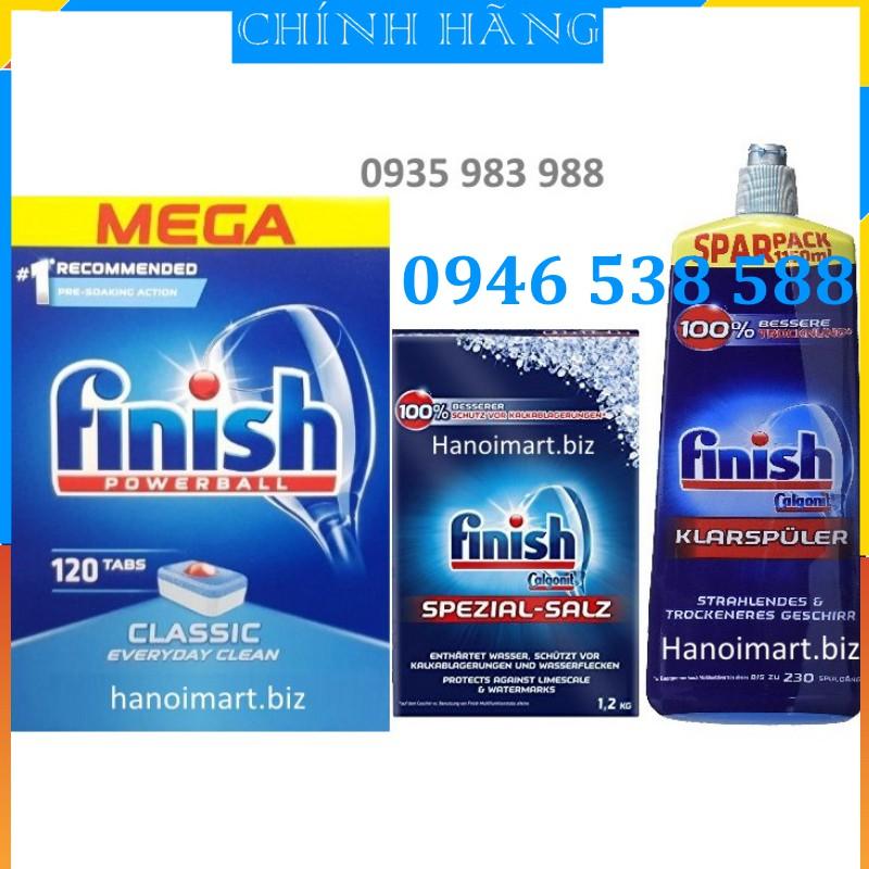 ✨Combo 120 Viên rửa bát Finish+ Nước làm bóng Finish 400ml +muối rửa chén finish 1,5kg