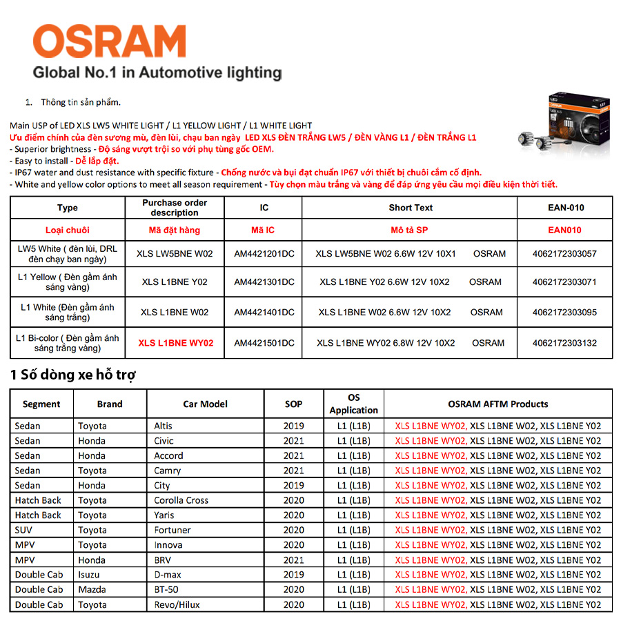 Hướng dẫn sử dụng và bảo quản Combo 2 Bóng Đèn Led Gầm XLS OSRAM L1/L1B 12V 6.6W