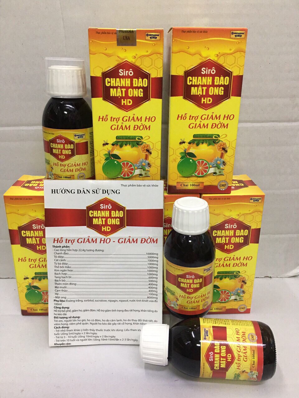 ✨Combo 2 Chai Siro Chanh Đào Mật Ong HD giảm ho, giảm đờm, đau rát cổ họng - Chai 100ml