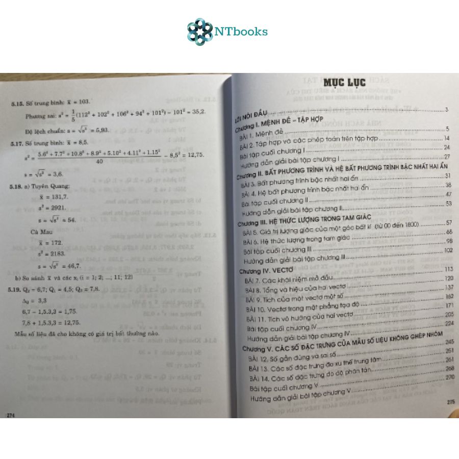 Mua tại TiktokTập 1 gồm các chương: Chương I: MỆNH ĐỀ - TẬP HỢP Chương II: BẤT PHƯƠNG TRÌNH VÀ HỆ BẤT PHƯƠNG TRÌNH BẬC NHẤT HAI ẨN Chương III: HỆ THỨC LƯỢNG TRONG TAM GIÁC Chương IV: VECTO Chương V: CÁC SỐ ĐẶC TRƯNG CỦA MẪU SỐ LIỆU KHÔNG GHÉP NHÓM Tập 2 gồm các chương: Chương VI: Hàm số, đồ thị và ứng dụng Chương VII: Phương pháp tọa độ trong mặt phẳng Chương VIII: Đại số tổ hợp Chương IX: Tính xác suất theo định nghĩa cổ điển NTBOOKS CAM KẾT: