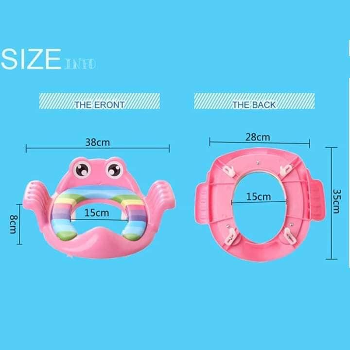 Bô Thu Gọn Bồn Cầu Cho Bé Hình Ếch bằng nhựa có Đệm Lót Ngồi và Tay Vịn phù hợp cả Bé Trai và Bé Gái
