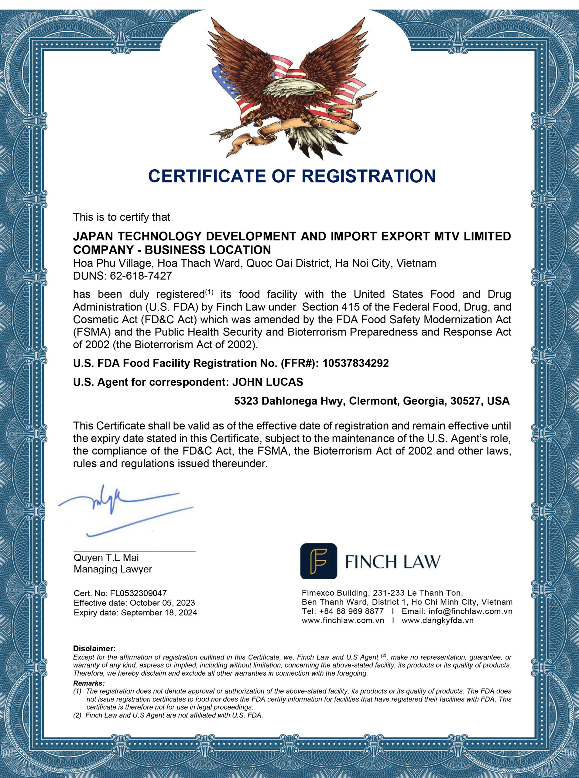 CÔNG TY TNHH MTV XUẤT NHẬP KHẨU VÀ PHÁT TRIỂN CÔNG NGHỆ NHẬT BẢN