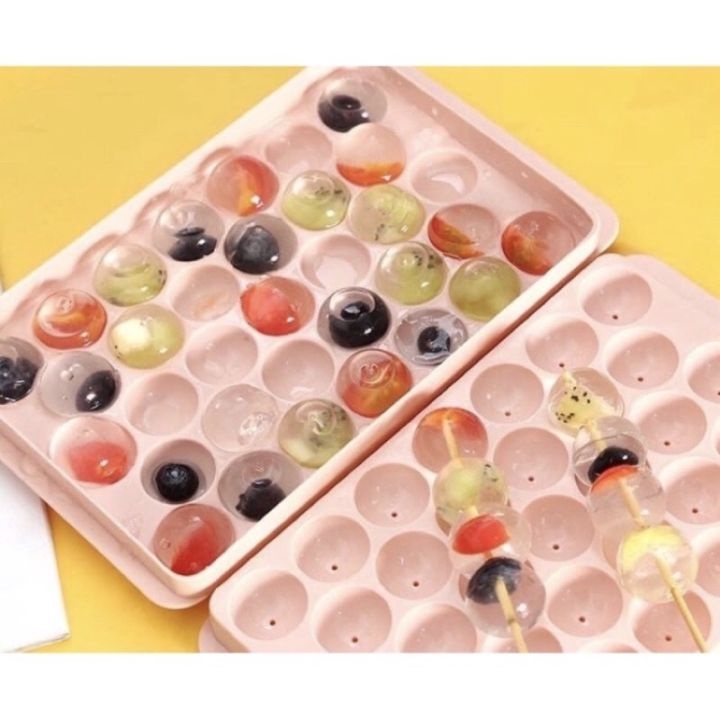 Khay đá tròn số lượng viên nhiều làm được hoa quả kem làm xong viên đá nhìn ngon và đẹp mắt