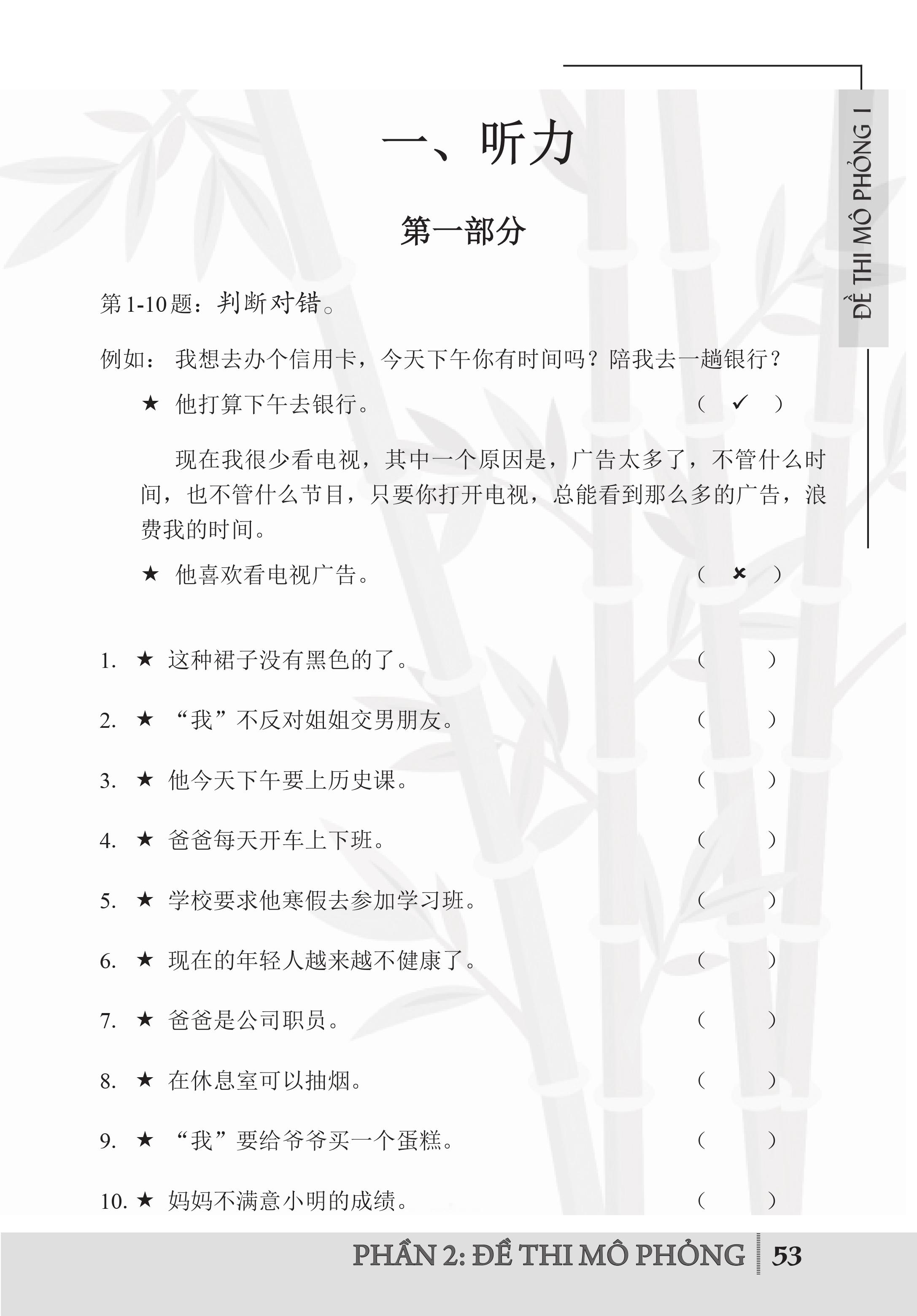 - Phần 2: Đề thi mô phỏng (cung cấp 12 đề thi mô phỏng HSK cấp 4)