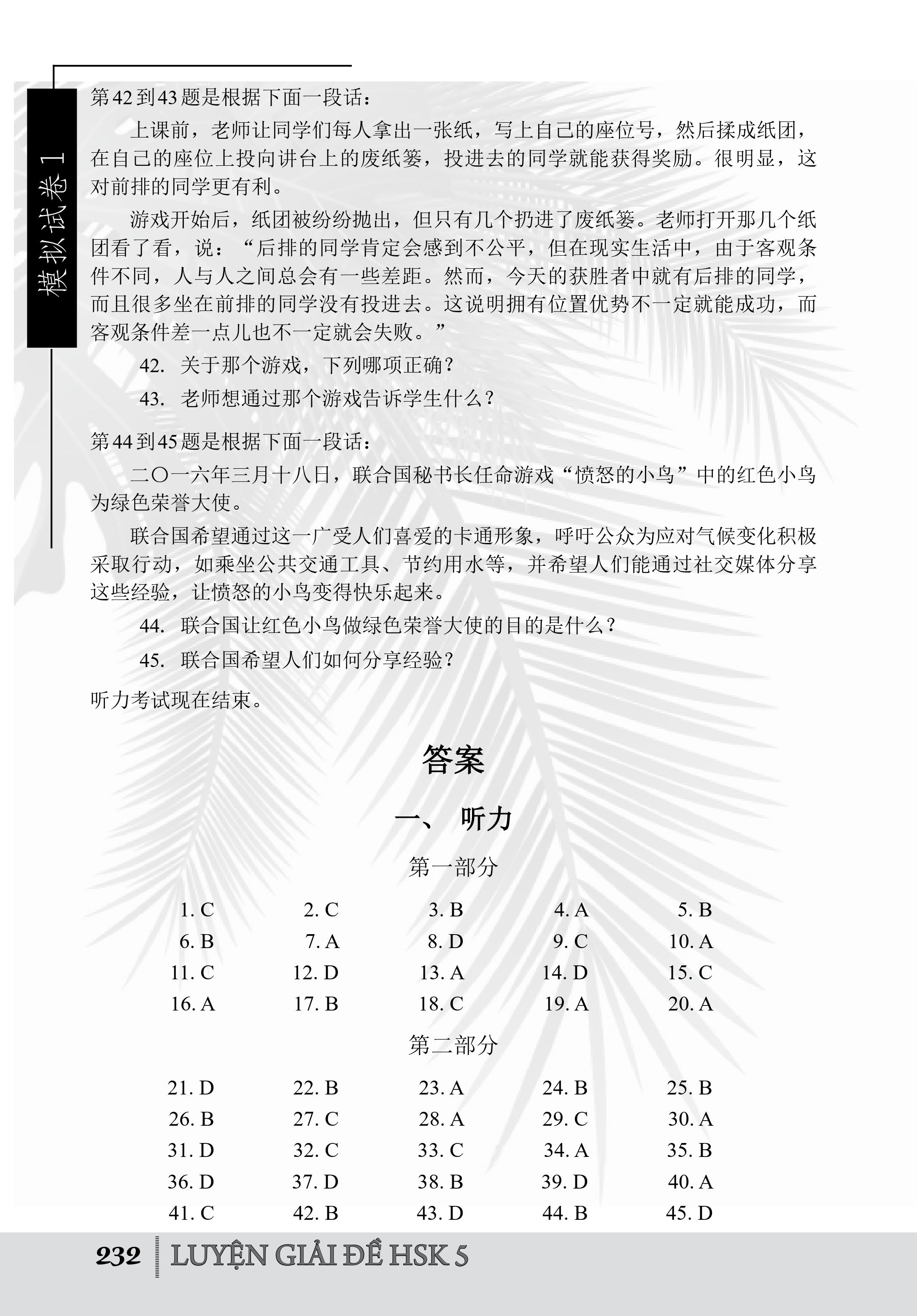 [Đề số 1]Thi năng lực Hán ngữ HSK5 /Official Examination Papers of HSK level 5 /汉语水平考试5级