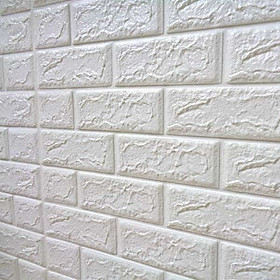 Xốp dán tường 3d giả gạch là sản phẩm mới đang được các gia đình ưa chuộng. Đặc biệt tại Hà Nội Đầu tiên người ta chỉ dùng để dán tường trang trí các quán cafe, sau dần rất nhiều hộ gia đình đã mua về để dán tường nhà, phòng khách, trang trí tạo điểm nhấn, hay hữu ích hơn là vá lại những mảnh tường bị bong chóc mà chưa thể sửa lại được. Đặc biệt mẫu giả gạch nhìn rất phong cách khác hẳn với giấy dán tường. Kích thước 70x70 cm Tính thẩm mĩ cao: Đây là một trong những ưu điểm nổi bật của xốp dàn tường. Là loại vật liệu được thiết kế có độ nổi 3D, xốp dán tường với các chi tiết vân được sản xuất như thật sẽ giúp che đi mọi khuyết điểm của tường một cách tối đa. Khả năng cách nhiệt, cách âm: xốp dán tường với độ dày tiêu chuẩn có được có đặc tính vật lý mà giấy dán tường không thể có được đó tính cách nhiệt và cách âm. Đặc biệt, xốp dán tường thích hợp sử dụng trong các môi trường cần sự yên tĩnh và thoải mái. Nếu bạn đang tìm miếng xốp dán tường cách âm hay xốp dán tường cách nhiệt thì đây chính là câu trả lời cho bạn.Khả năng chống ẩm: Đây cũng đặc điểm được người tiêu dùng đánh giá rất cao ở sản phẩm này đây cũng được coi là giải pháp hoàn hảo cho mọi tường ẩm điều mà giấy dán tường và các vật liệu khác không thể làm được Khả năng hấp thụ va chạm mạnh: Đối với những gia đình có trẻ nhỏ, các bậc phụ huynh luôn quan tâm đến sự an toàn của trẻ bởi khi trẻ chơi đùa có thể bị va đập vào tường. Tuy nhiên, với ưu điểm là hấp thụ va chạm, xốp ốp tường có thể khiến các bậc phụ huynh yên tâm bởi nó có thể bảo vệ trẻ khỏi những cú va đập cũng như giảm thiểu chấn thương, tạo môi trường vui chơi an toàn cho trẻ.Độ bền cao: Xốp dán tường có tính đàn hồi tốt trước những va đập cơ học, đặc tính này cũng làm tăng tuổi thọ của sản phẩm.  Tuổi thọ trung bình của sản phẩm có thể lên đến 15 năm, nếu so với giấy dán tường chúng vượt trội hơn nhiều, có thể nói vui rằng tường hỏng mà xốp chưa hỏng. Có thể dễ dàng vệ sinh: bằng khăn ướt. Trong quá trình sử dụng không tránh được việc chúng ta làm vấy bẩn lên tấm xốp dán tường, các bạn chỉ cần lấy khăn thẩm hòa thêm chút nước tẩy rửa là có thể dễ dàng làm sạch như mới.Thi công dễ dàng: Không cần phải là một thợ thi công chuyên nghiệp bạn cũng có thể dễ dàng ốp và trang trí cho căn nhà với loại xốp dán tường tiện lợi này.