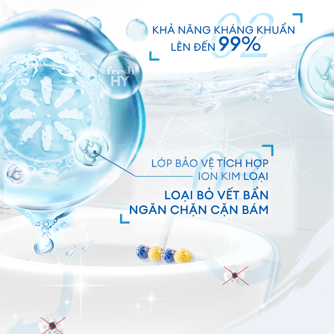 Viên Tẩy Bồn Cầu Fresh HY 350 Lần Xả, Làm Sạch Khuẩn & Ngăn Ngừa Mảng Bám, Khử Mùi Và Lưu Hương Thơm Mát (2 Vỉ Treo) Công thức 4 chức năng 1. Làm sạch toilet mỗi lần xả nước. 2. Công thức giúp ngăn ngừa sự hình thành cặn vôi. 3. Giúp ngăn ngừa bụi bẩn mới bám vào bề mặt. 4. Lưu hương thơm tươi mát lâu dài trong phòng tắm.