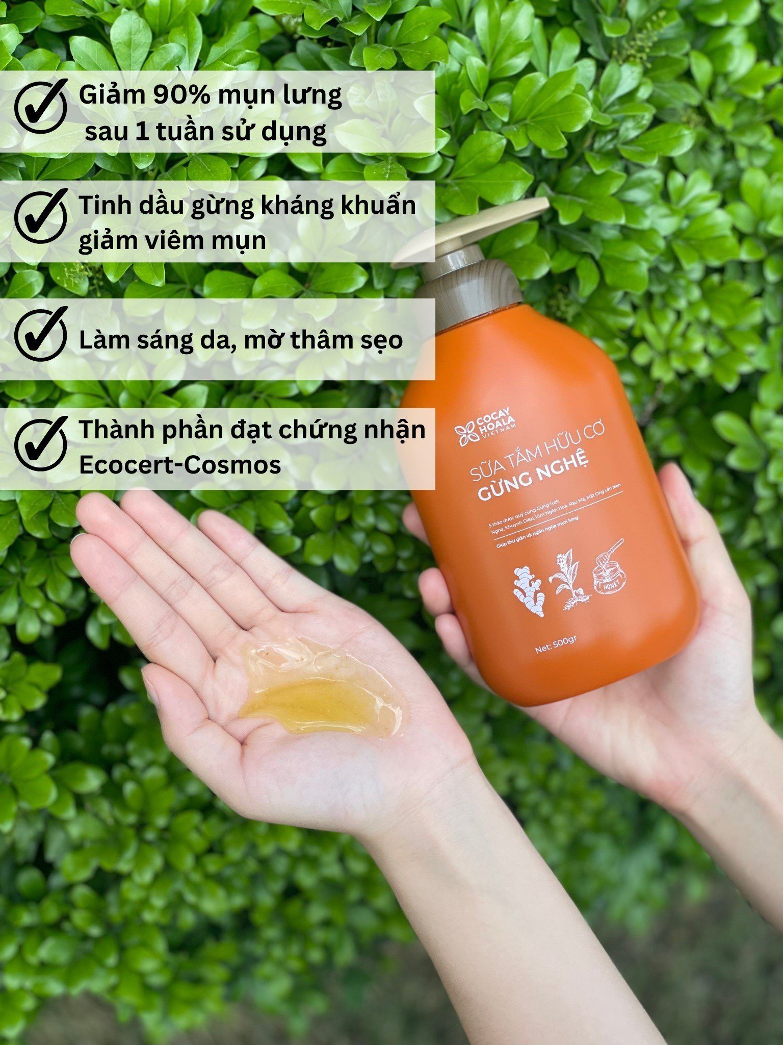 TOP 10 THƯƠNG HIỆU UY TÍN HÀNG ĐẦU CHÂU Á Cùng sữa tắm hữu cơ gừng nghệ chan hòa mái ấm gia đình Sữa tắm thảo dược Gừng Nghệ là sự kết hợp giữa tinh hoa y học cổ truyền và công nghệ bào chế hiện đại giúp tối ưu hóa công dụng của từ 9 loại thảo dược quý. Nếu như tinh dầu gừng có khả năng phòng chống cảm lạnh, trúng gió, giữ ấm cơ thể thì chiết xuất nghệ giúp làm sáng da, chống oxy hóa và trẻ hóa làn da Đặc biệt với những mẹ bầu sau sinh bị rạn da, thâm sạm da vùng bụng, đùi. Những tinh chất thiên nhiên trong sản phẩm sẽ hỗ trợ phục hồi làn da sau quá trình mang thai, nuôi dưỡng da từ sâu bên trong, giúp da trắng đều và đẹp tự nhiên. ️CÔNG DỤNG