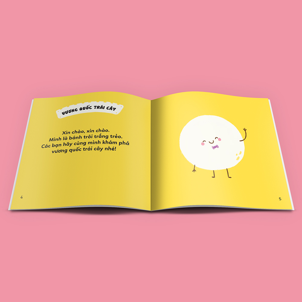 • Bánh trôi trắng trẻo có một hành trình phiêu lưu thú vị: Mỗi khi bơi qua một dòng nước lại biến thành một loại trái cây mang nhiều màu sắc khác nhau. "Trái câu muôn màu" cho bé thấy được sự đa dạng về màu sắc của những loại trái cây quen thuộc.