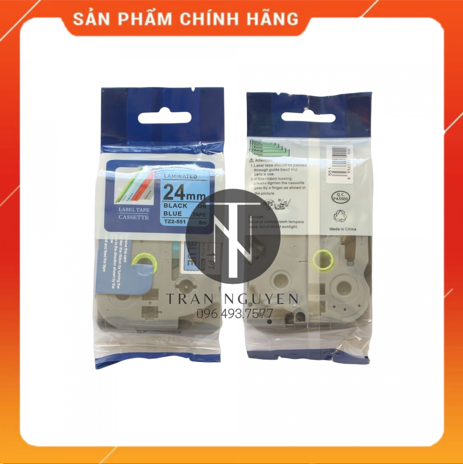 Nhãn in TZ2-551 Brother Nhãn in đa lớp sử dụng cho máy in nhãn Brother, tất cả trong 1, mực nằm bên trong, chống chịu dung môi, hóa chất, nước, dầu mỡ, nhiệt độ Mã