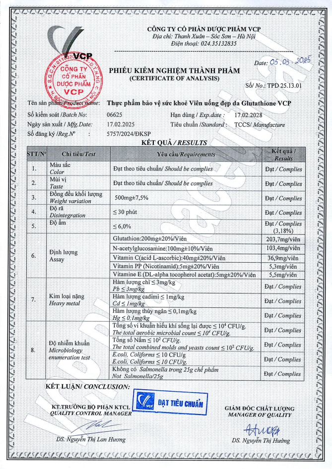 ✨[Combo 3 hộp] TPBVSK Viên uống đẹp da Glutathione VCP - Hỗ trợ làm sáng da, giảm các triệu chứng nhăn da, khô da, nám da - Hộp 20 viên