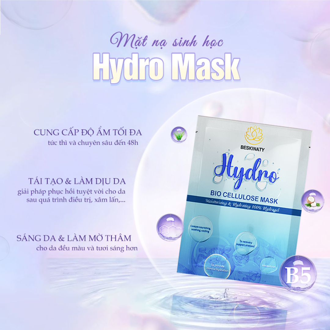 Mặt nạ sinh học cấp ẩm chuyên sâu HYDRO BIO CELLULOSE MASK BESKINATY Ứng dụng công nghệ sinh học tiên tiến hiện nay, mặt nạ sinh học cấp ẩm chuyên sâu Hydro BESKINATY được chiết