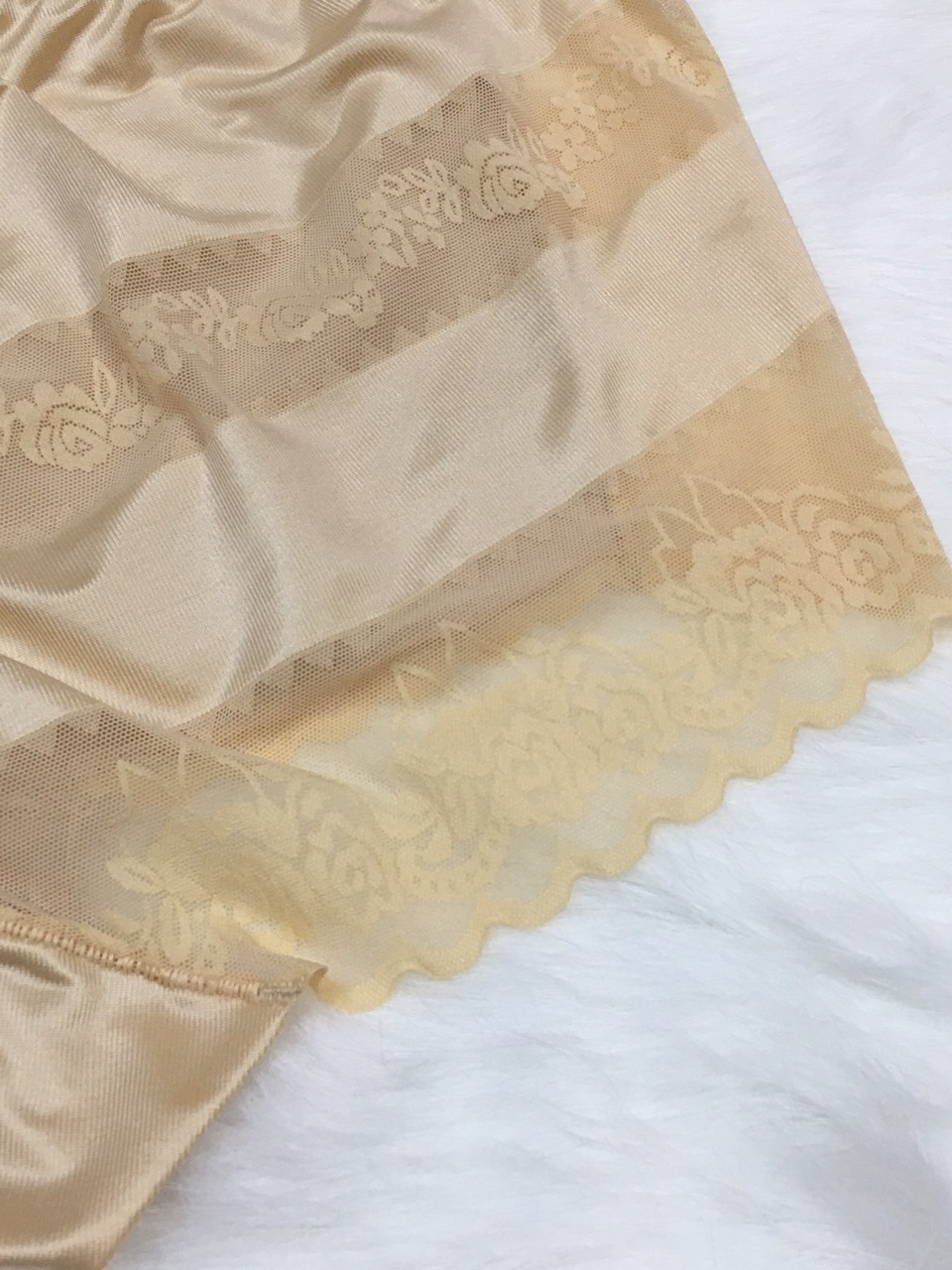 - Chất liệu: thun bóng phối ren