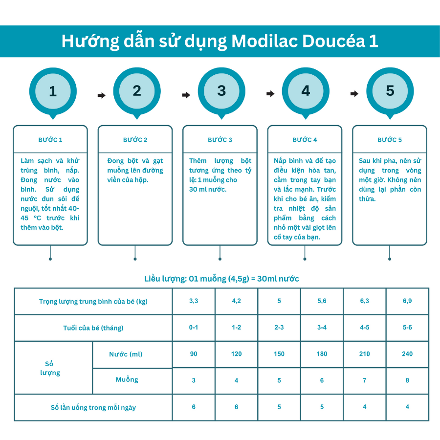 • Mỗi lon sữa Modilac Doucea đều trải qua hơn 40 năm cải tiến không ngừng, phù hợp với sự phát triển của bé.