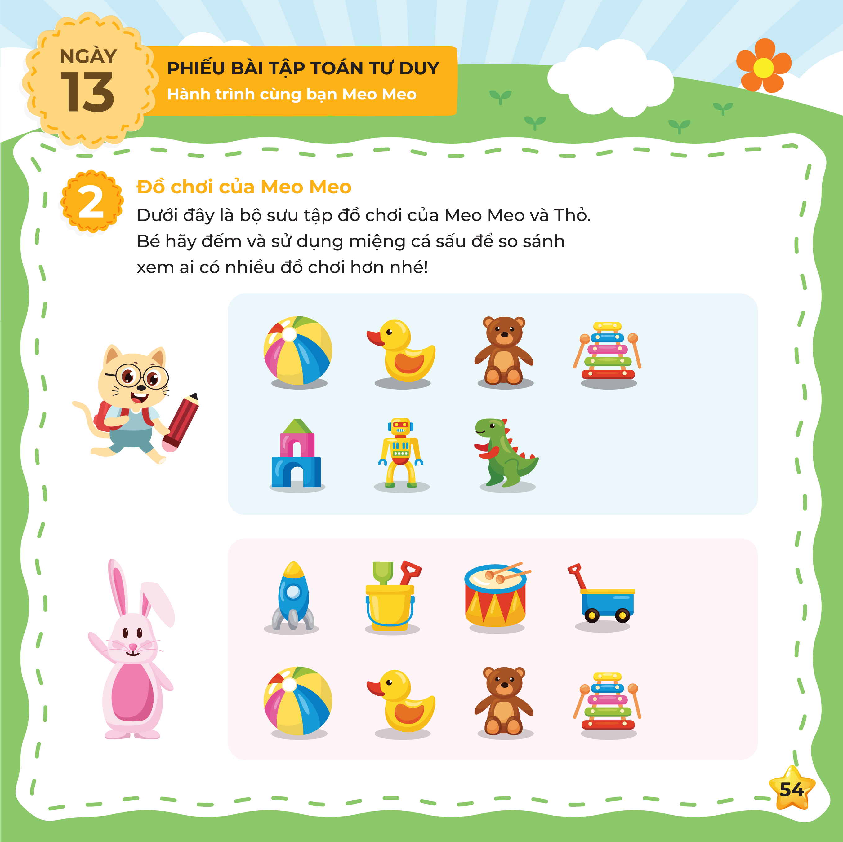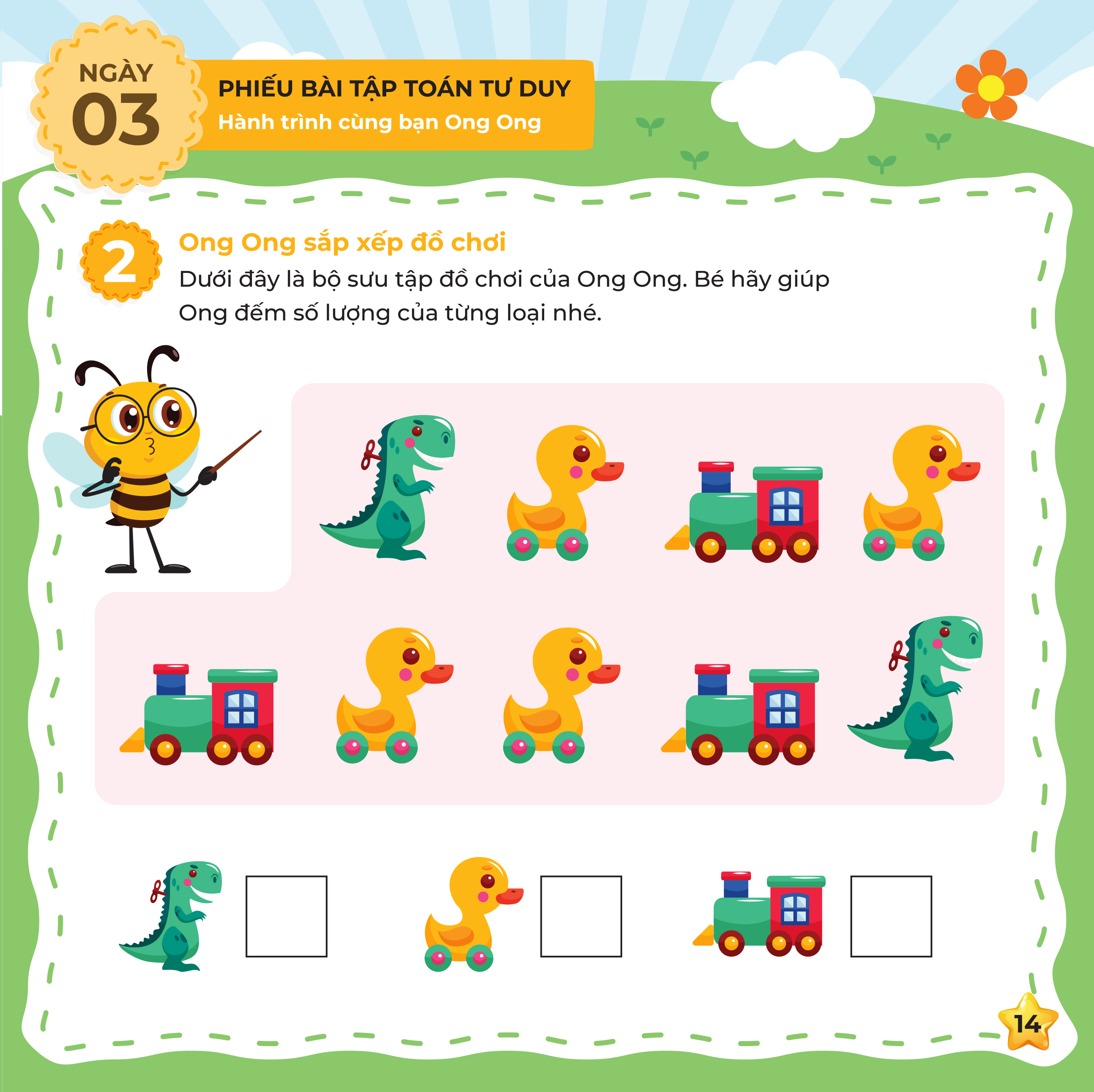 Khám phá một chủ đề toán học thú vị: đếm số, phân loại, đo lường, hình học, so sánh, quy luật,... Làm quen với toán học qua trò chơi, hình ảnh và thử thách logic nhẹ nhàng. ️ Luyện viết số – nối hình – tô màu – chọn đáp án, giúp bé phát triển kỹ năng vận động tinh & ngôn ngữ. Có video giảng bài cho bé nhanh hiểu.