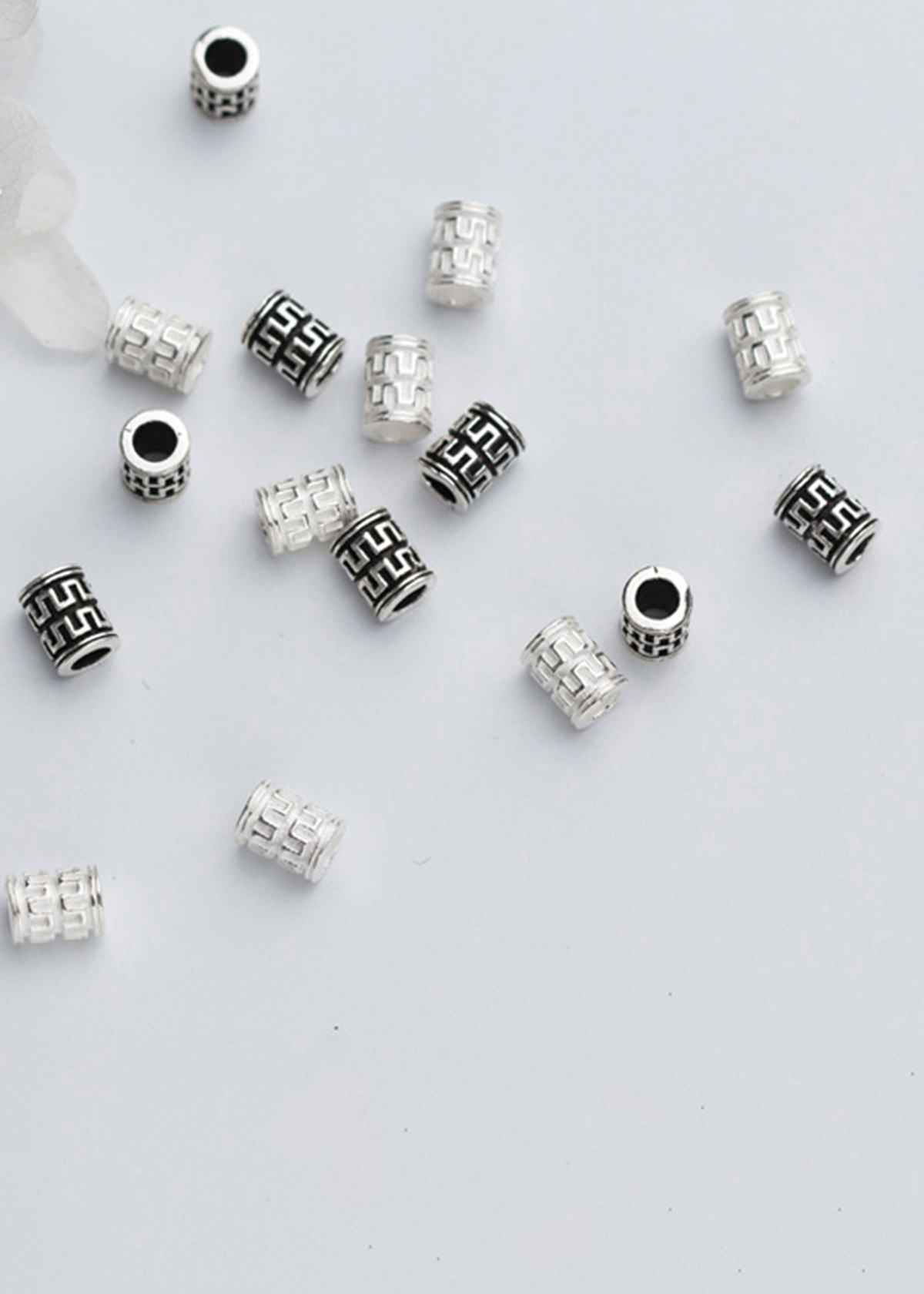 CHARM BẠC CHẶN HẠT HÌNH TRỤ HỌA TIẾT HOA VĂN: