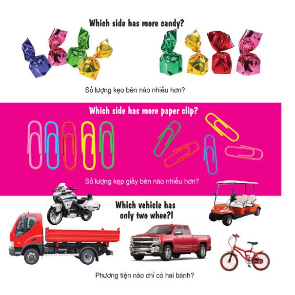 Điểm cộng của bộ sách này còn là yếu tố song ngữ Anh - Việt hấp dẫn, giới thiệu những từ vựng, hình ảnh, kiến thức cơ bản, gần gũi đầu tiên dành cho bé.