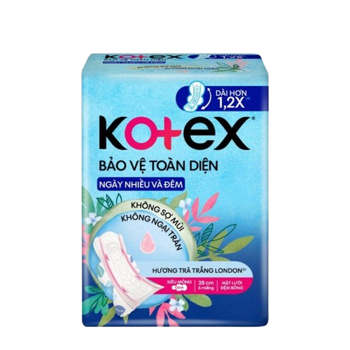 Băng Vệ Sinh KOTEX BẢO VỆ TOÀN DIỆN NGÀY NHIỀU VÀ ĐÊM MỚI Phiên bản 28cm dài hơn 1,2 lần so với băng ban ngày, với: • DÀI HƠN 1,2X bảo vệ tốt hơn cho