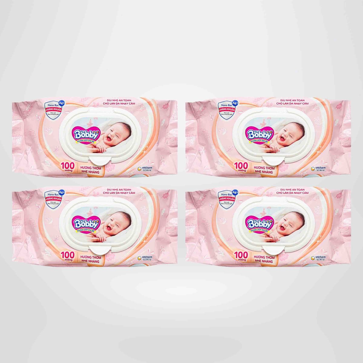 Mua tại TiktokCombo 4 Gói Khăn Giấy Ướt Hương Dịu Nhẹ Bobby Care 100 Miếng/Gói Khăn ướt Bobby là sản phẩm chăm sóc trẻ em của Tập đoàn Unicharm - Nhật Bản. Hơn 40 năm qua, sản phẩm Chăm sóc trẻ em của Unicharm đồng hành cùng hàng triệu em bé Nhật Bản từ những ngày đầu tiên chào đời, và tự hào được lựa chọn là nhà sản xuất tã lót em bé số 1 tin dùng bởi các bà mẹ Nhật. Nay, sản phẩm khăn ướt trẻ em được phát triển ứng dụng công nghệ của nhà dẫn đầu, Bobby cam kết đem đến sự thoải mái, an toàn và nâng niu tối đa cho bé yêu - như vòng tay âu yếm của mẹ.