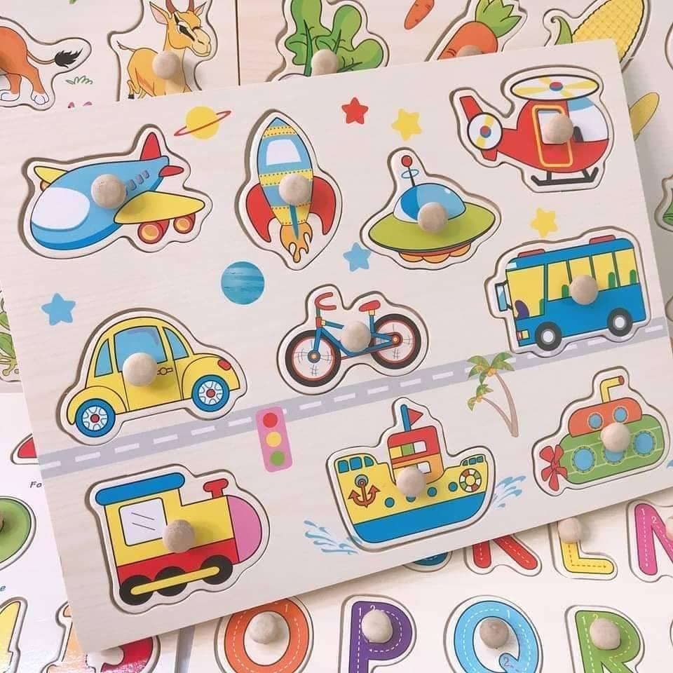 Bảng Núm Gỗ Nhiều Chủ Đề Cho Bé - Đồ Chơi Gỗ HT SYS