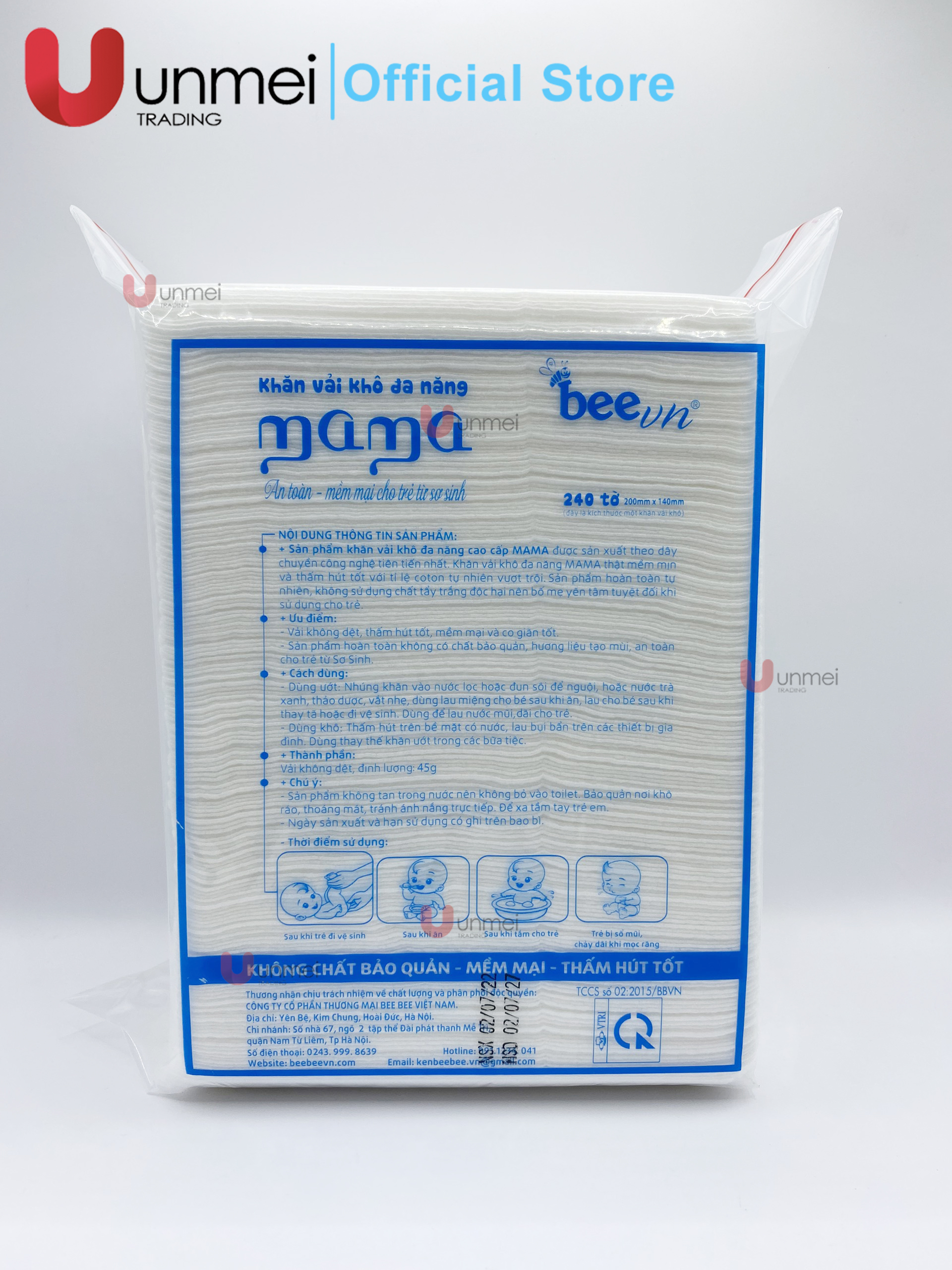 - Khăn khô Mama thích hợp sử dụng khi mẹ tắm cho bé, khi vệ sinh thay bỉm tã hoặc trước và sau khi mẹ cho bé bú, đều rất tiện lợi. Ngoài ra khăn vải khô còn vô cùng thích hợp cho nhiều hoạt động sinh hoạt hàng ngày khác của mọi thành viên trong gia đình.