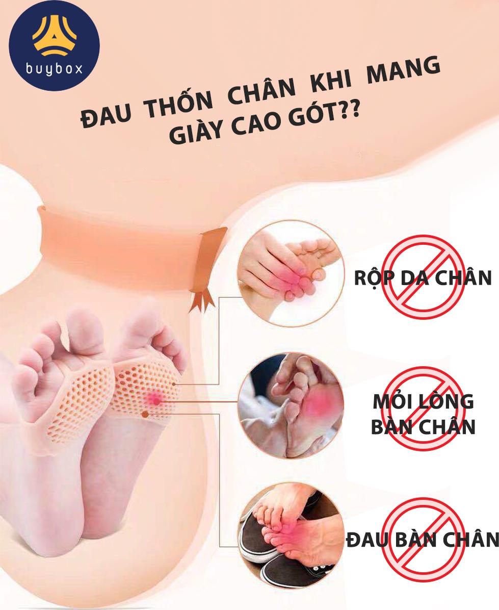 - Đi lâu ngày lót theo giày bị lún làm cho phần bàn chân bị hai sần. Từ nay không còn phải lo lắng nữa vì đã có "Vớ silicone tổ ong đệm êm lòng bàn chân phía trước" của buybox giúp giảu quyết triệt để các vấn đề thường gặp khi mang giày cao gót. CÔNG DỤNG NỔI BẬT