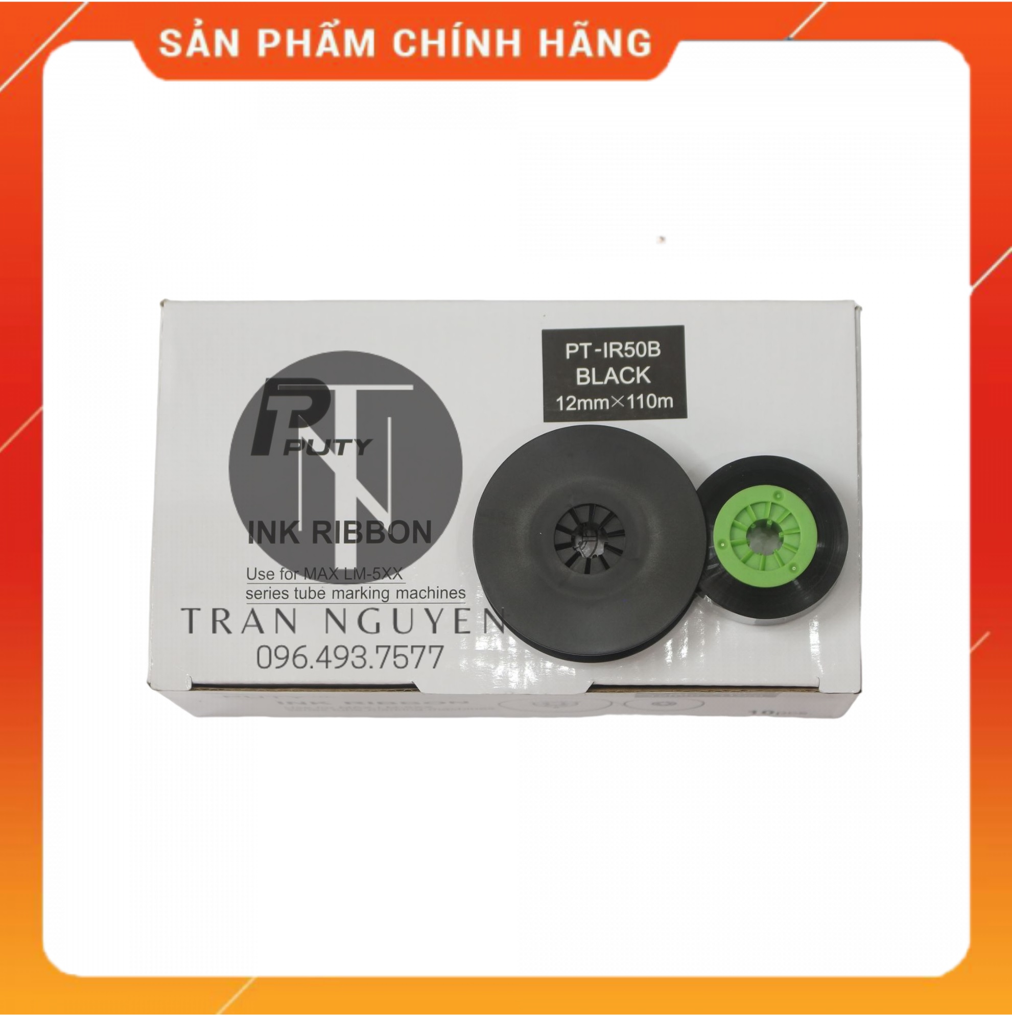 Mua tại TiktokMực in ống lồng Max PT-IR50B • Thương hiệu: Max. • Xuất sứ: Nhật Bản. • Mã sản phẩm: Max PT-IR50B. • Danh mục: Băng mực in Max. • Kích thước: Khổ rộng 12mm, dài 110m/cuộn • Màu sắc: Màu đen. • Sử dụng: In lên ống lồng đầu cốt, in trên băng nhãn in. • Máy thích hợp sử dụng: LM-550A, LM-550E. • Quy cách: 10 cuộn/ hộp.