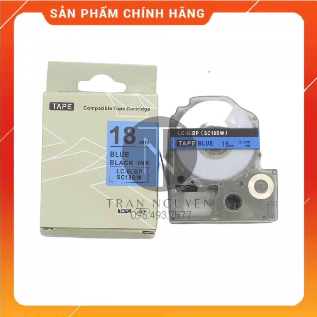 Thông tin sản phẩm:• Mã sản phẩm: SC18BW/LC-5LBP• Màu sắc: Chữ đen nền dương (Black on blue)• Kích thước: 18mm x 8m (Cuộn nhãn khổ 18mm, tổng chiều dài cuộn nhãn 8m ).• Loại nhãn: nhãn đa lớp• Sử...