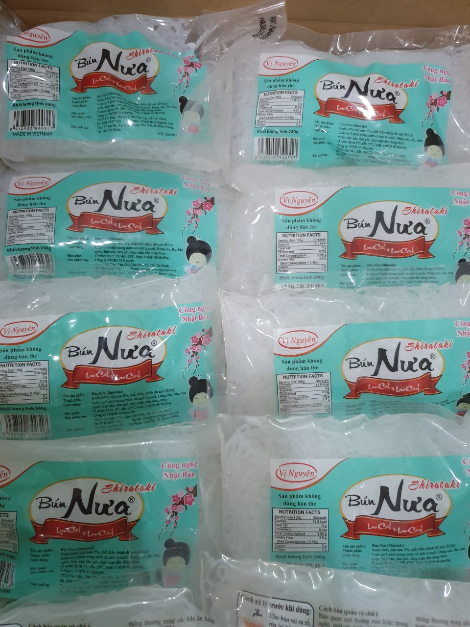 - Bảo quản: Nơi thoáng mát Những thực phẩm được làm từ bột Glucomanna có trong củ nưa, một chất xơ chứ không phải là tinh bột. Sản phẩm được sản xuất theo công nghệ Nhật Bản, không chất bảo quản. ️ THÀNH PHẦN: Bún nưa chiếm 97% chất xơ. Năng lượng 5-30kCal/100g ️ Cách sơ chế: mở hộp đổ bỏ nước muối ngâm, rửa qua bằng nước, thả vào nước sôi cho sôi lại 3-5′. Sau đó có thể chế biến đa dạng như bún miến bình thường như làm bún trộn, bún xào, hoặc bún nước, đặc biệt ăn lẩu với bún Shi cực chuẩn, vì đặc trưng của em nó là càng nấu lâu càng ngấm gia vị, đặc biệt là không hề trương hay nhũn, luôn luôn dai ngon. Bún có hàm lượng chất xơ rất cao, là loại củ có thành phần dinh dưỡng là 0 carb from sugar và gần như 0 kcal. phù hợp với mọi lứa tuổi, mọi chế độ ăn kiêng, kể cả DAS, Lowcarb.