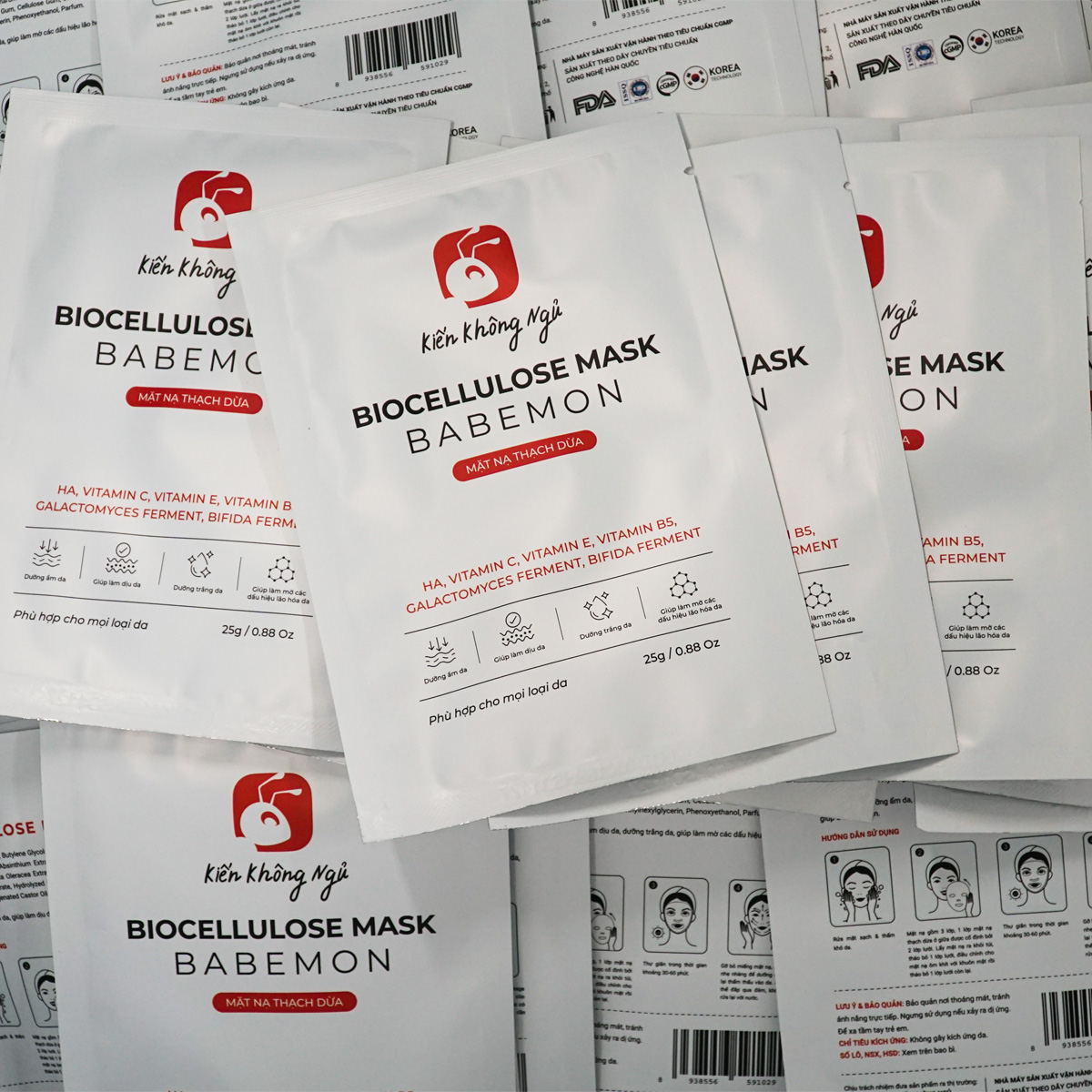 Combo 5 miếng Mặt nạ sinh học dừa tươi lên men – Mặt nạ thạch dừa Biocellulose Mask Babemon Mặt nạ sinh học dừa tươi lên men cao cấp – Mặt nạ thạch dừa Biocellulose Mask Babemon của Kiến Không Ngủ dưỡng da trắng sáng, làm mờ các dấu hiệu lão hóa da, cấp ẩm, hỗ trợ phục hồi và trẻ hóa làn da, giúp làn da căng mịn, sáng khỏe. Sở hữu công thức đặc biệt được nghiên cứu kỹ lưỡng bởi các chuyên gia R&D của Việt Nam và Hàn Quốc, phù hợp với đặc trưng của làn da phụ nữ Việt Nam, mặt nạ thạch dừa Biocellulose Mask Babemon giúp làm dịu da, hỗ trợ làm đều màu da, cung cấp đủ độ ẩm cho da, giúp da săn chắc, mịn màng hơn. Sau mỗi lần sử dụng, bạn sẽ cảm nhận ngay sự tươi mới, mịn màng và sức sống trên làn da của mình. CÔNG DỤNG