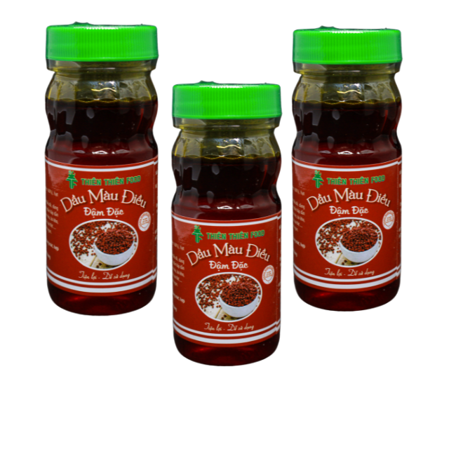 Dầu màu điều là một loại màu thực phẩm dùng để tạo màu đỏ tự nhiên cho món ăn. Dầu màu điều có màu vàng đỏ óng ả giúp món ăn của chúng ta thêm phần đẹp mắt