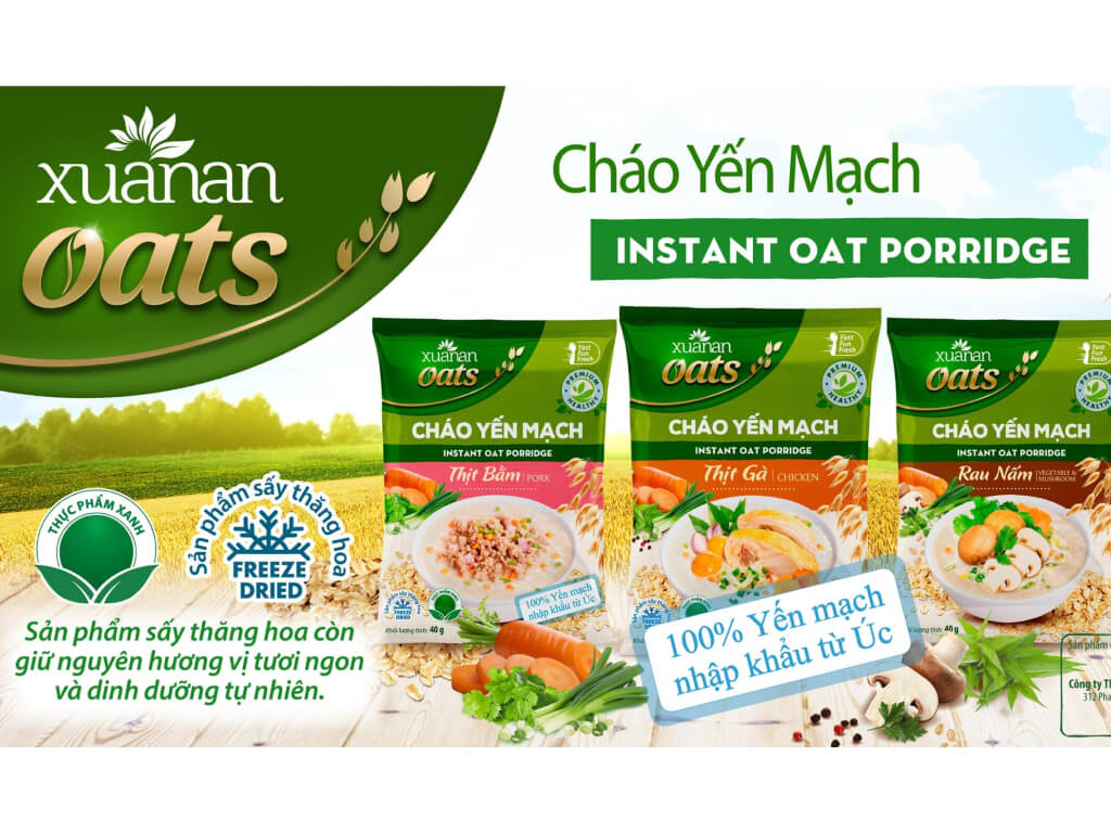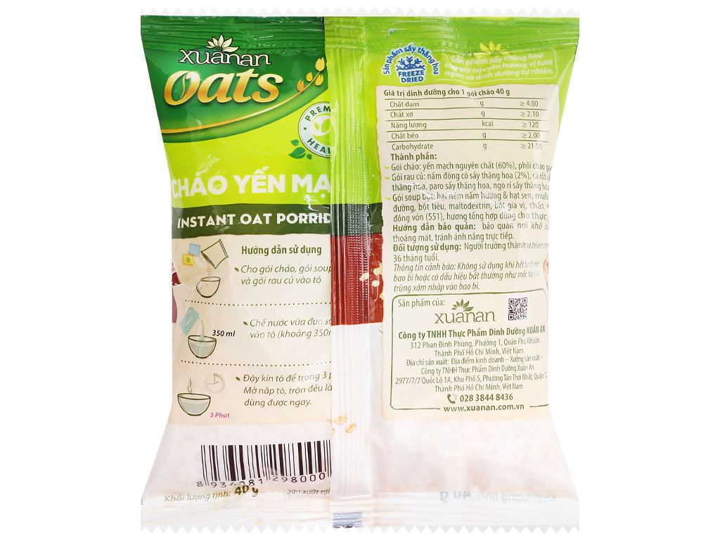 Gói cháo yến mạch nguyên chất (60%), phôi cháo gạo.