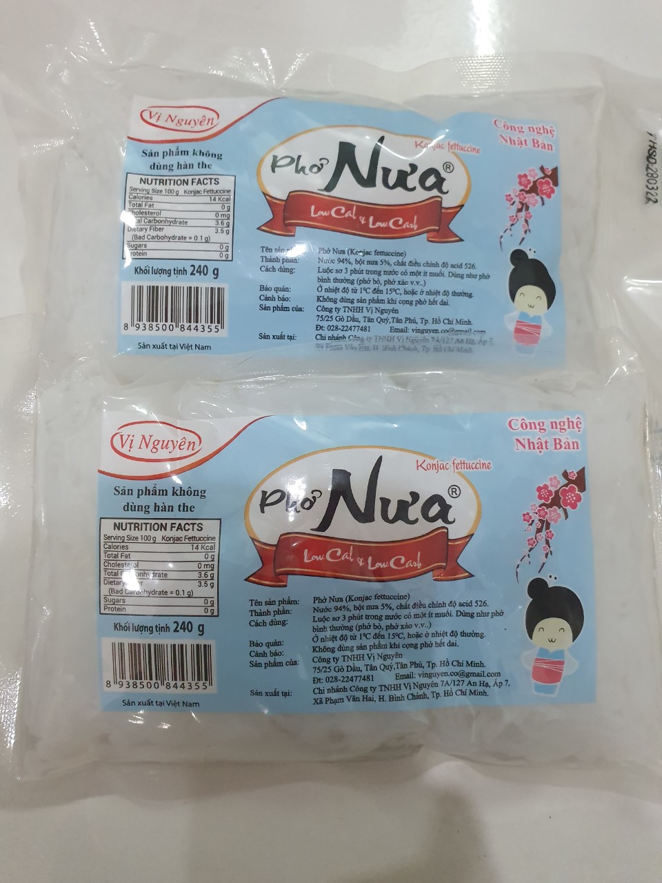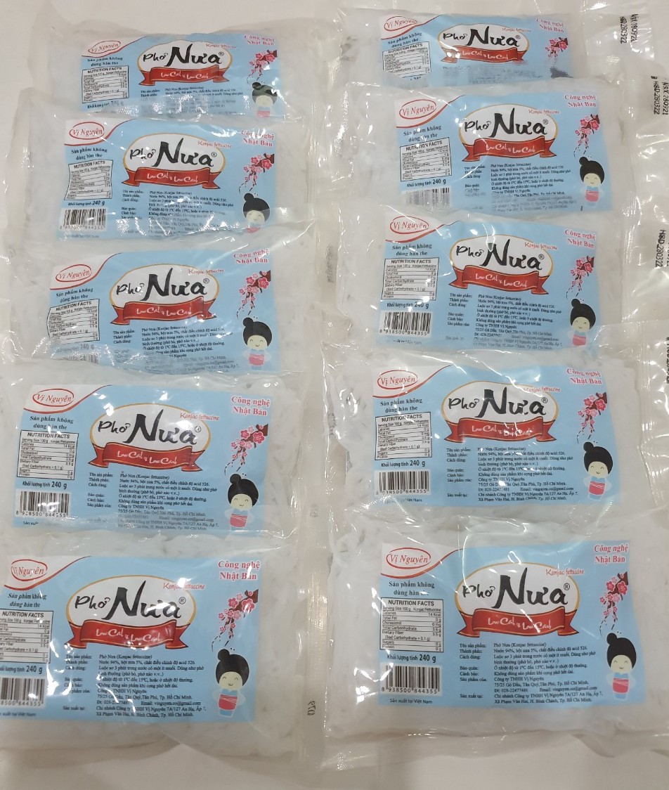 PHỞ NƯA VỊ NGUYÊN 240G - Xuất xứ: Việt Nam - Hạn sử dụng: 6 tháng (gói 240g) - Đóng gói: 240g/gói - Bảo quản: Nơi thoáng mát Những thực phẩm được làm từ bột Glucomanna