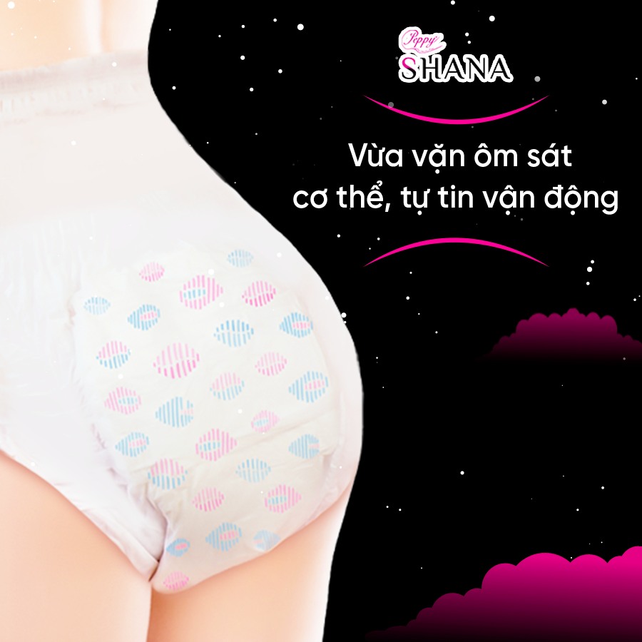 Combo 8 gói Băng Vệ Sinh Quần Peppy Shana Ngày Đêm Siêu Thấm, Freesize, Chống Tràn Tối Đa, Siêu Tiết Kiệm (20 Miếng) I. MÔ TẢ SẢN PHẨM Trải qua ngày ấy thật thoải