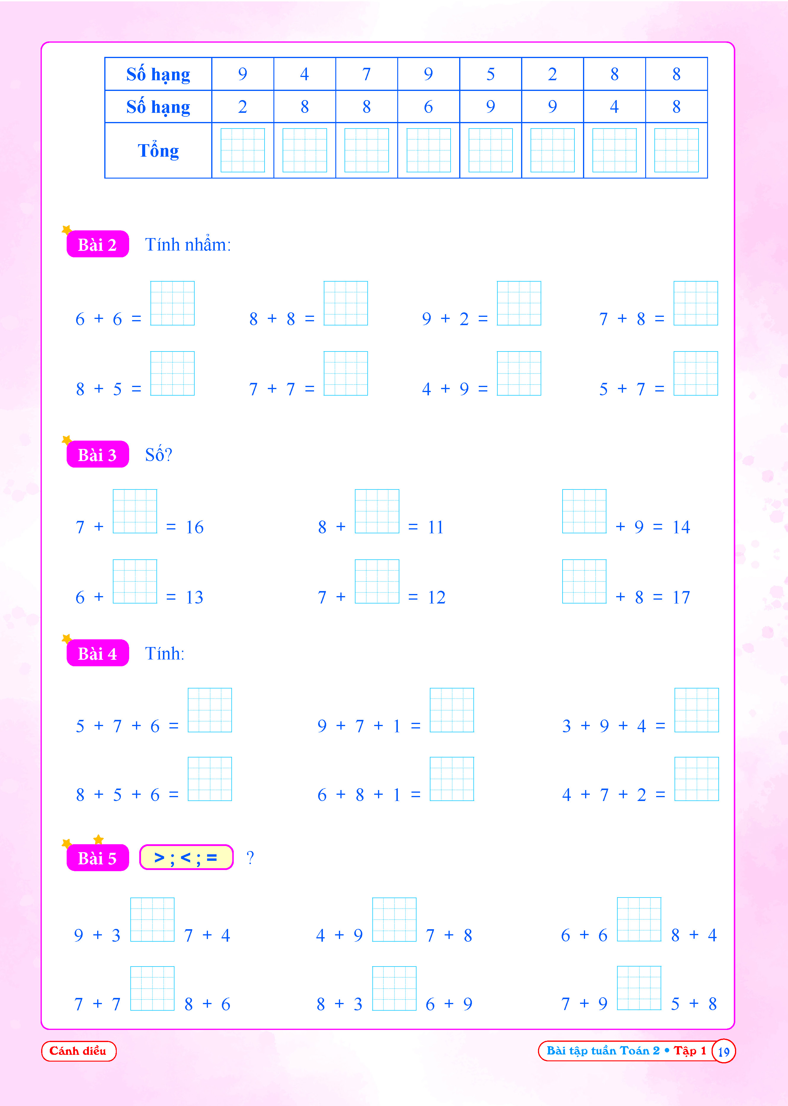 Mua tại TiktokCombo Bài Tập Tuần Toán, Tiếng Việt Lớp 2 - Cánh Diều Lưu ý: Chọn đúng loại sách cần mua ở tuỳ chọn "Chọn Sách" Combo đầy đủ gồm có 4 cuốn (2 môn Toán và tiếng Việt, mỗi môn có 2 cuốn cho 2 học kì) bám sát theo chương trình "Cánh Diều" ĐẶC ĐIỂM NỔI BẬT: