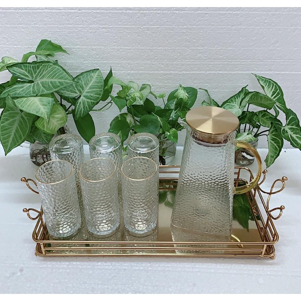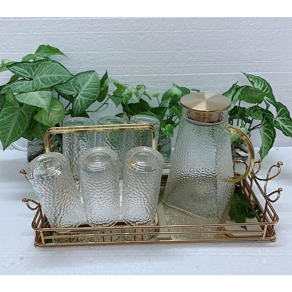 ✨COMBO BỘ BÌNH CỐC THỦY TINH CHỊU NHIỆT CAO CẤP KÈM KHAY VƯƠNG MIỆN VÀNG VÀ GIÁ ÚP CỐC