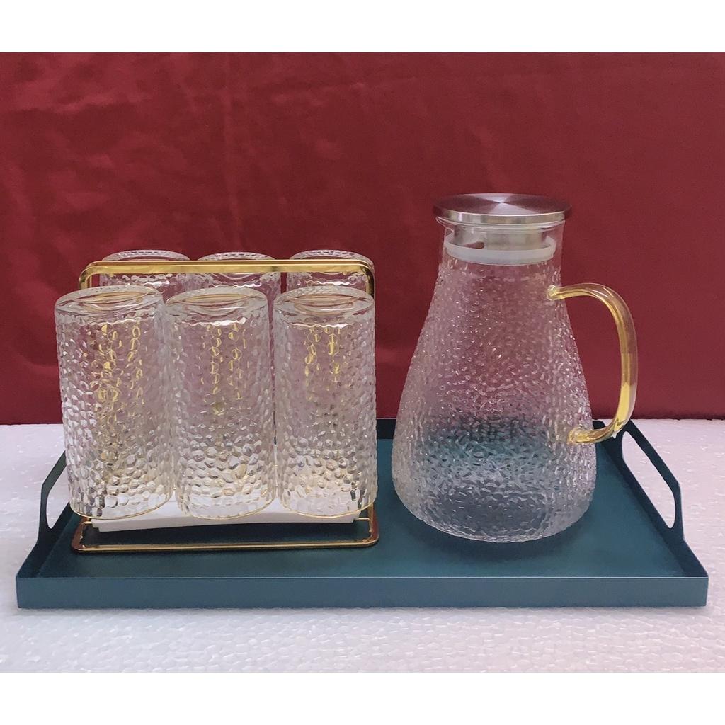 Bộ khay bình nước 6 cốc thuỷ tinh cao cấp