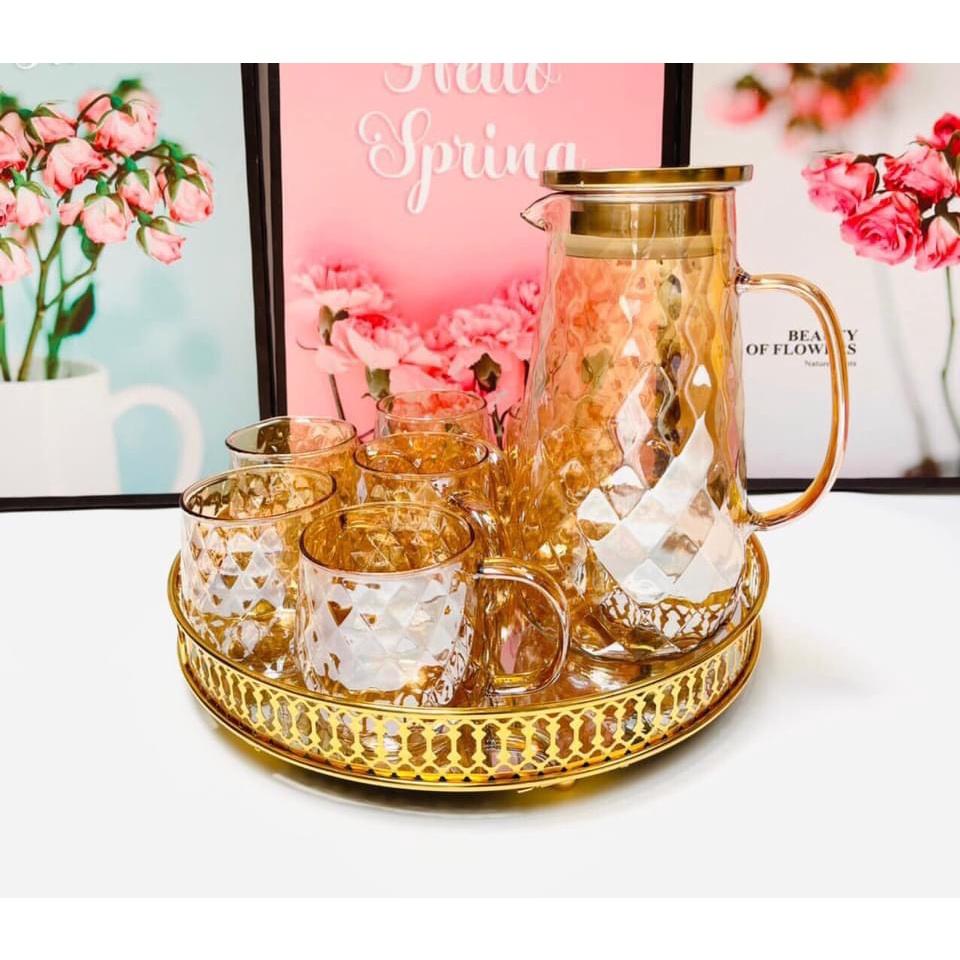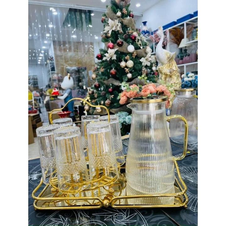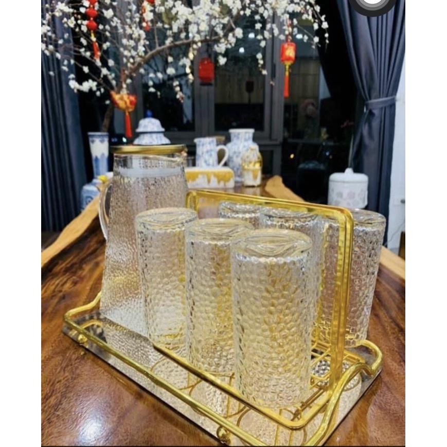 Bộ sản phẩm gồm: 1 bình nước + 6 cốc + Khay + giá úp cốc