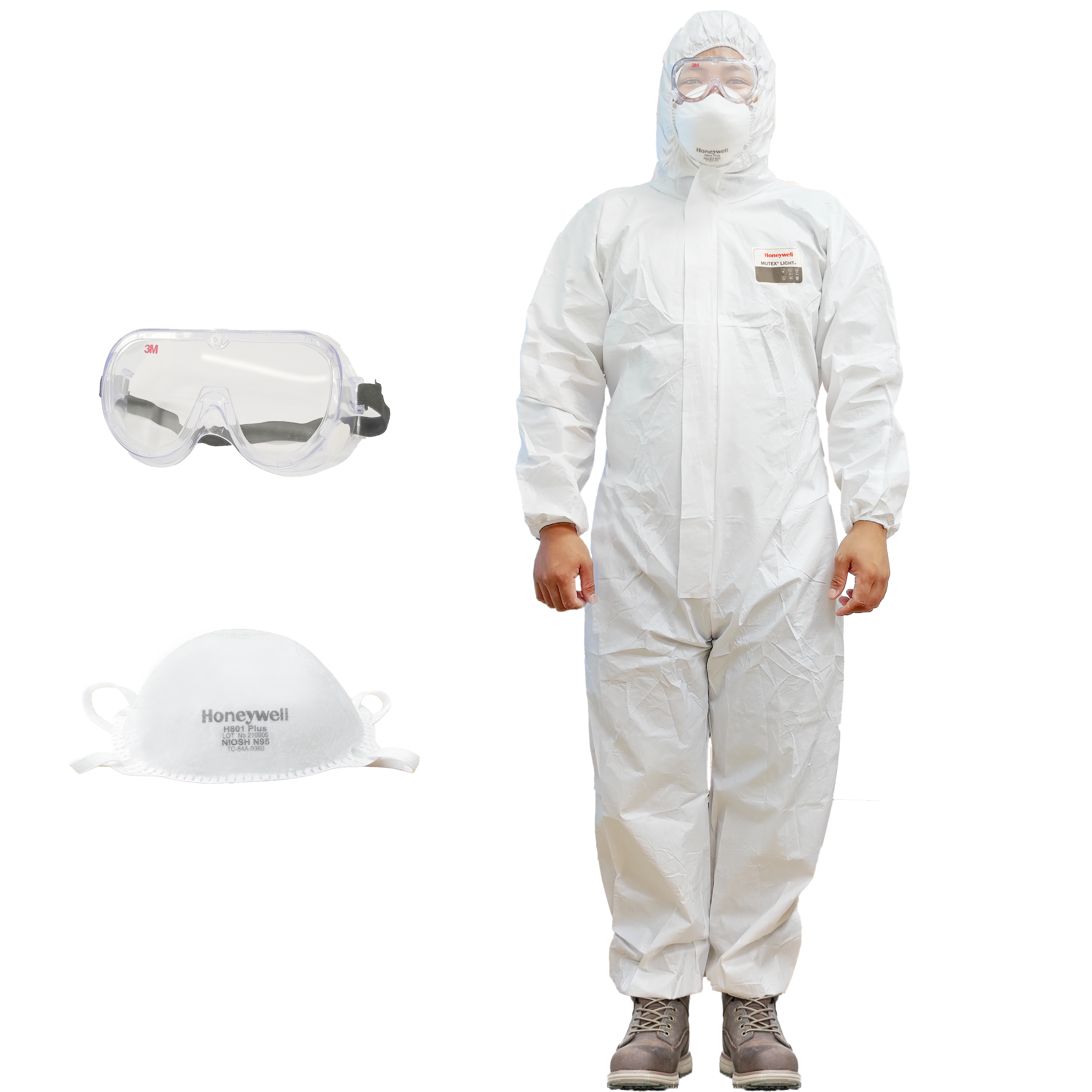 ✨Combo: Bộ quần áo Honeywell Mutex Light (Level 3) kèm Kính bảo hộ 1621 3M và Khẩu trang Honeywell H801 N95