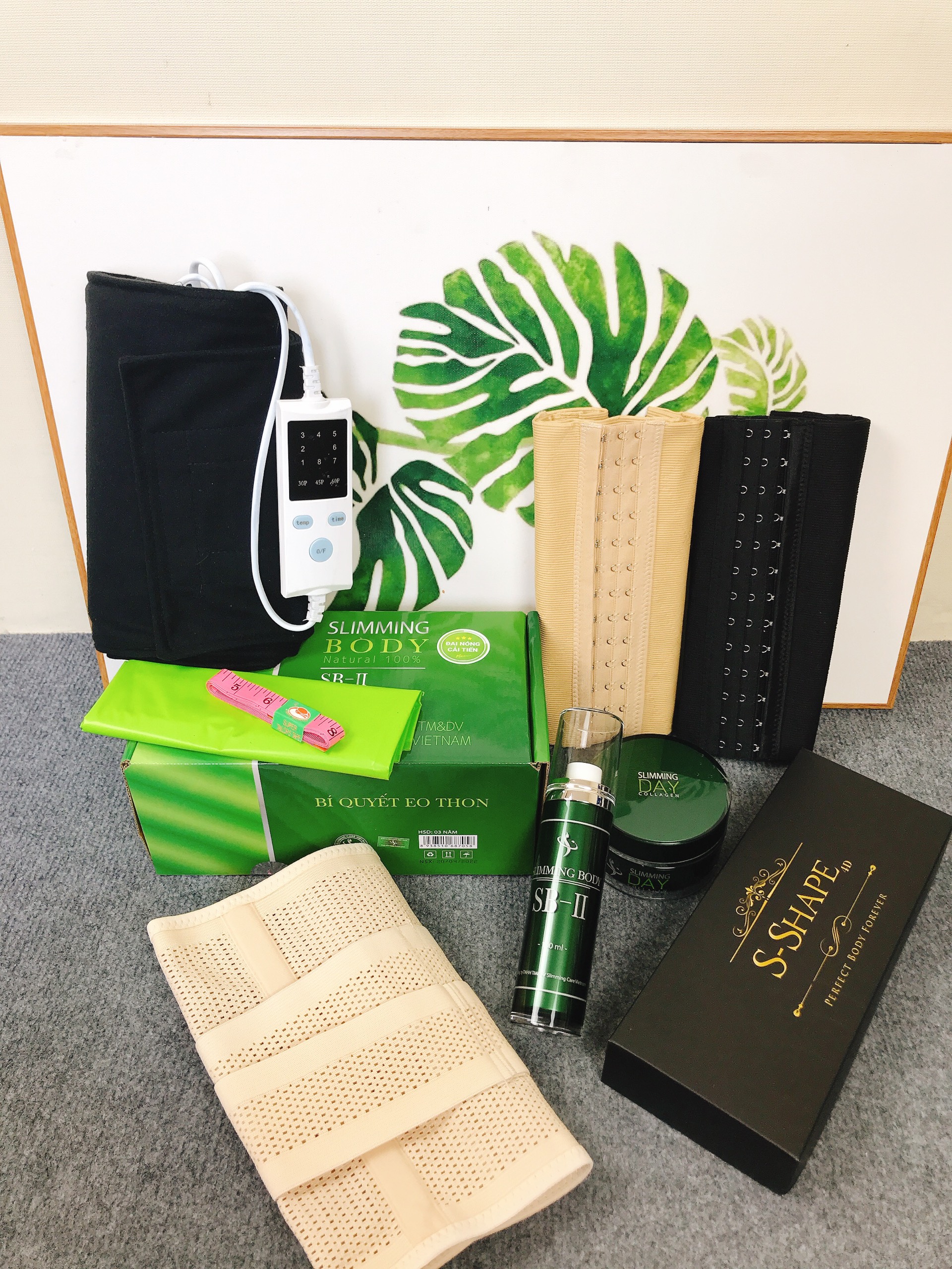 1 bộ bao gồm : đai ủ nóng CẢI TIẾN + tinh dầu + nilong quấn + thước dây ( dùng đc trong 2-3 tháng ) + Hưỡng dẫn sự dụng