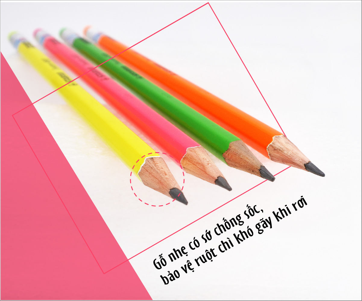Gỗ nhẹ chống sốc, bảo vệ ruột chì khó gãy khi rơi