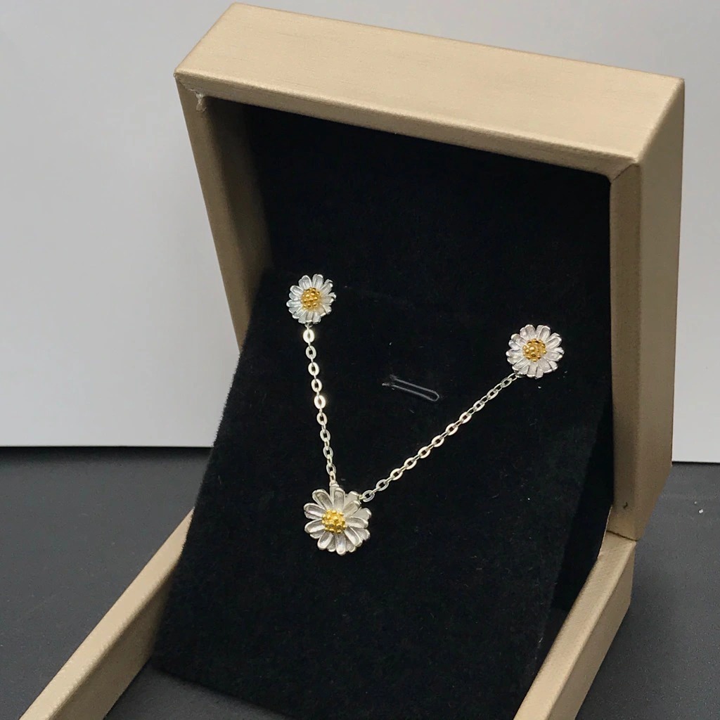 Combo Dây chuyền Hoa tai-Cúc họa mi- chính hãng BẠC HIỂU MINH BCB004