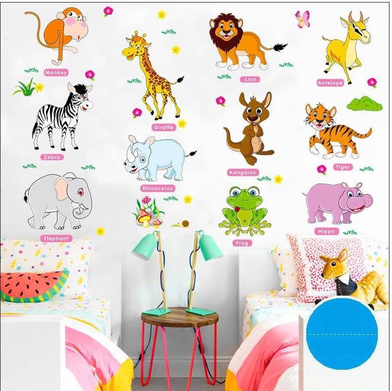 DECAL DÁN TƯỜNG cho bé Vườn Thú Tiếng Anh 1 - GIẤY và TRANH dán tường con vật cho bé học .