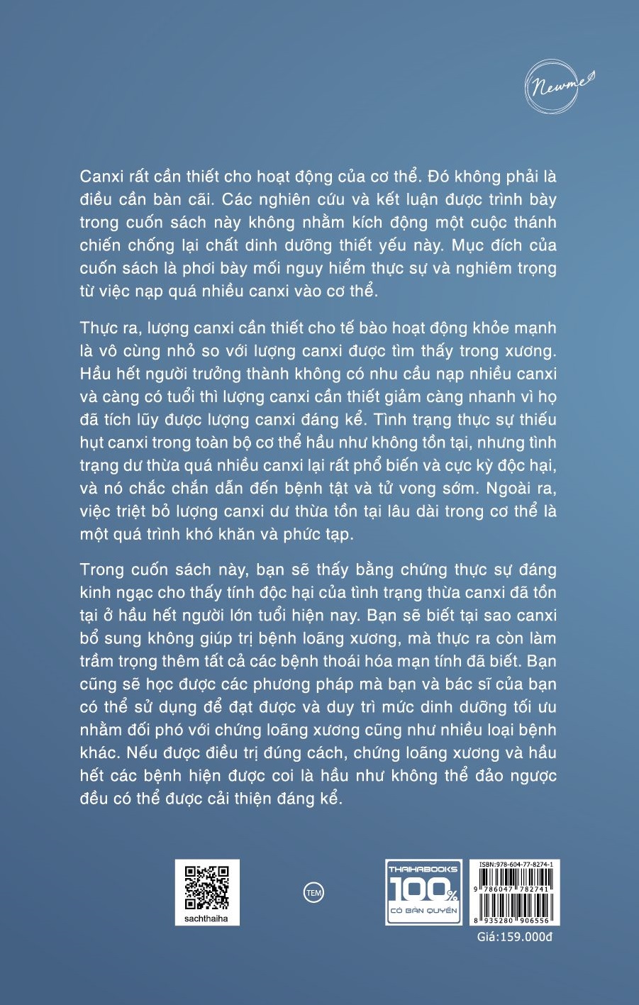 Trong các trang tiếp theo, bạn sẽ gặp bằng chứng thực sự đáng kinh ngạc cho thấy tính độc hại của tình trạng thừa canxi vốn tồn tại ở hầu hết người lớn tuổi hiện nay. Bạn sẽ biết tại sao canxi bổ sung không giúp trị chứng loãng xương, mà thực ra còn làm trầm trọng thêm tất cả các bệnh thoái hóa mạn tính đã biết. Bạn cũng sẽ học được các phương pháp mà bạn và bác sĩ của bạn có thể sử dụng để đạt được và duy trì mức dinh dưỡng tối ưu nhằm đối phó với chứng loãng xương cũng như nhiều loại bệnh khác. Nếu được điều trị đúng cách, chứng loãng xương và hầu hết các bệnh hiện được coi là hầu như không thể đảo ngược đều có thể được cải thiện đáng kể.