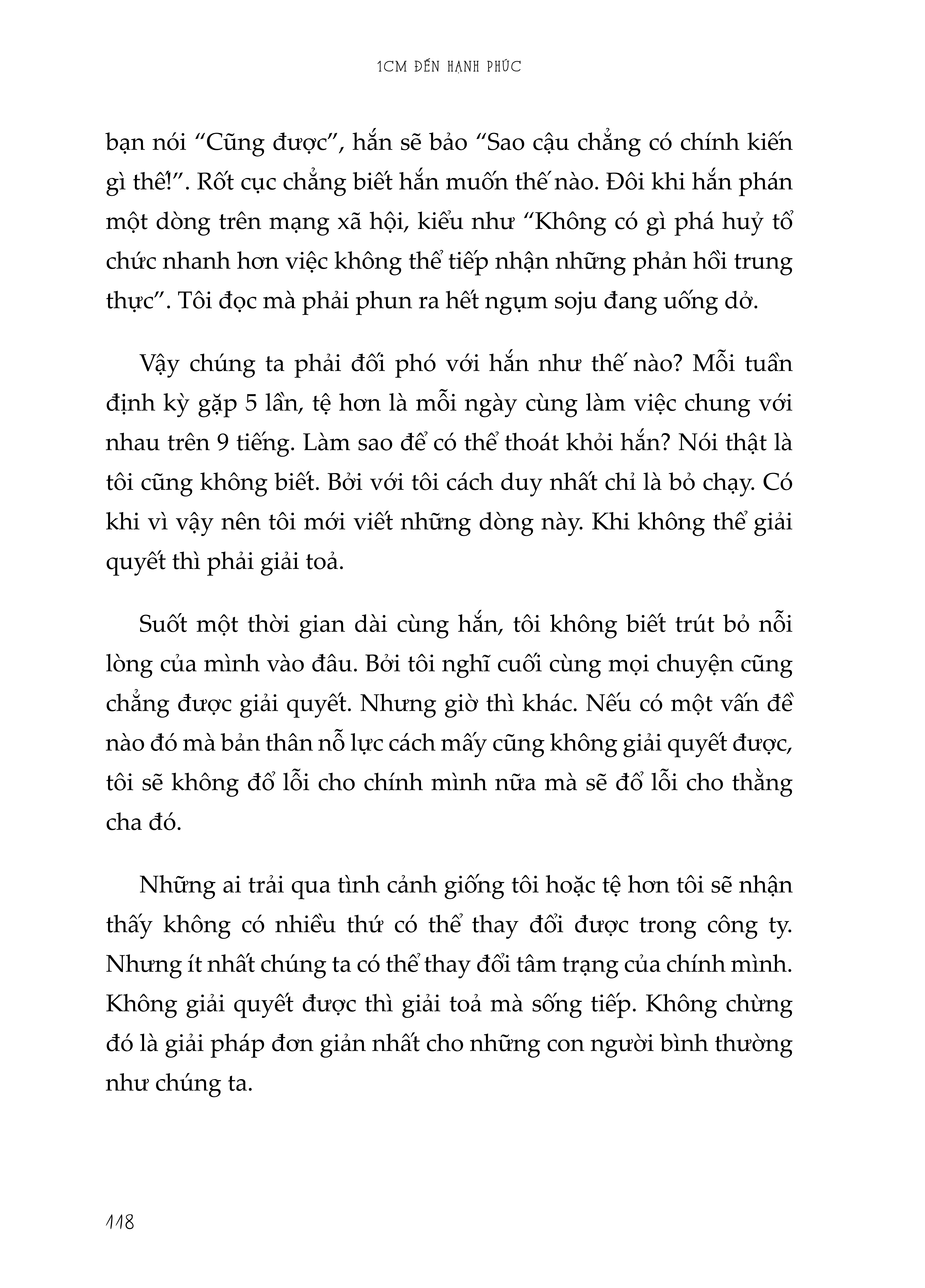 Tác giả đã trực tiếp va chạm, tổn thương và khóc vô số lần khi phải đối mặt với những vấn đề về mối quan hệ giữa người với người gặp phải trong cuộc sống hằng ngày, và ghi lại trải nghiệm trong cuốn sách. Đó là dũng cảm tránh xa những người thô lỗ, cách phân biệt tình bạn thật sự và cách làm thế nào để không đánh mất chính mình trong tình yêu.
